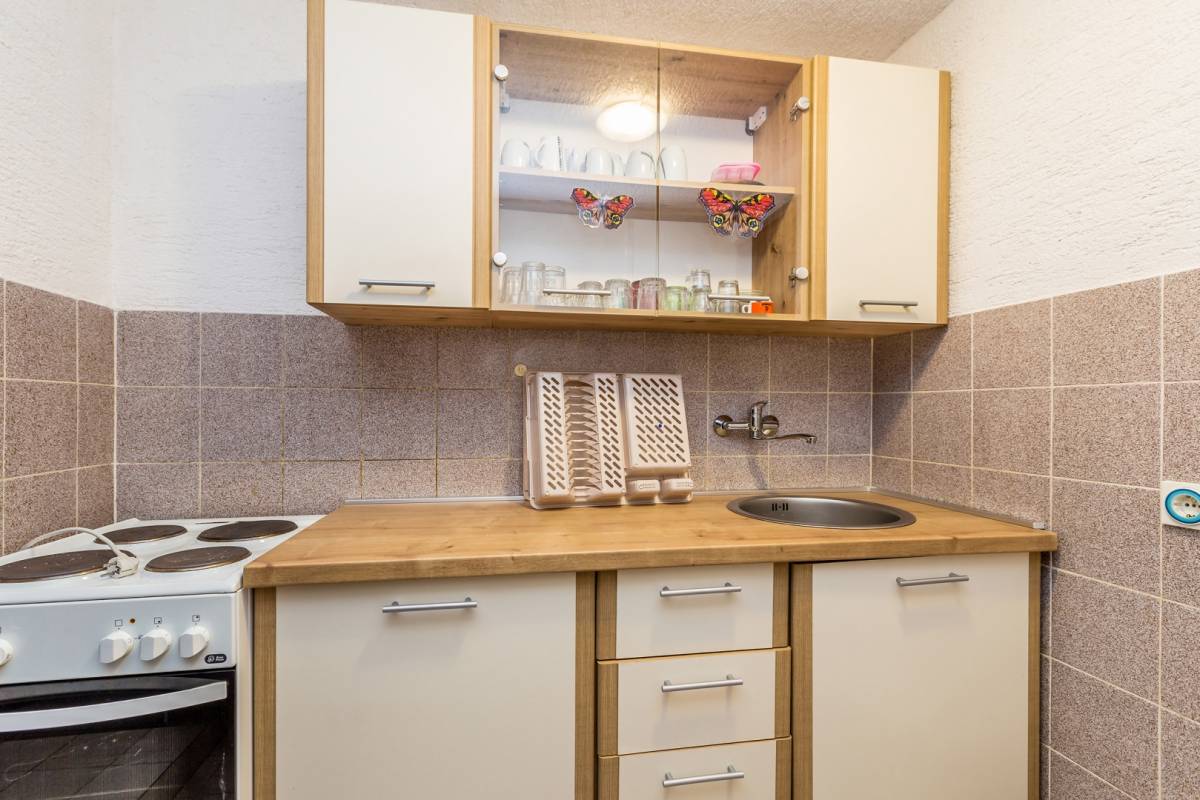 Prostrana terasa u prizemlju, popločana kamenom, poziva na opuštanje, dok vrt s mediteranskim zelenilom i zidanim roštiljem pruža dodatnu vrijednost za boravak na otvorenom. Na katu se nalazi još jedna terasa idealna za sunčanje i druženje.