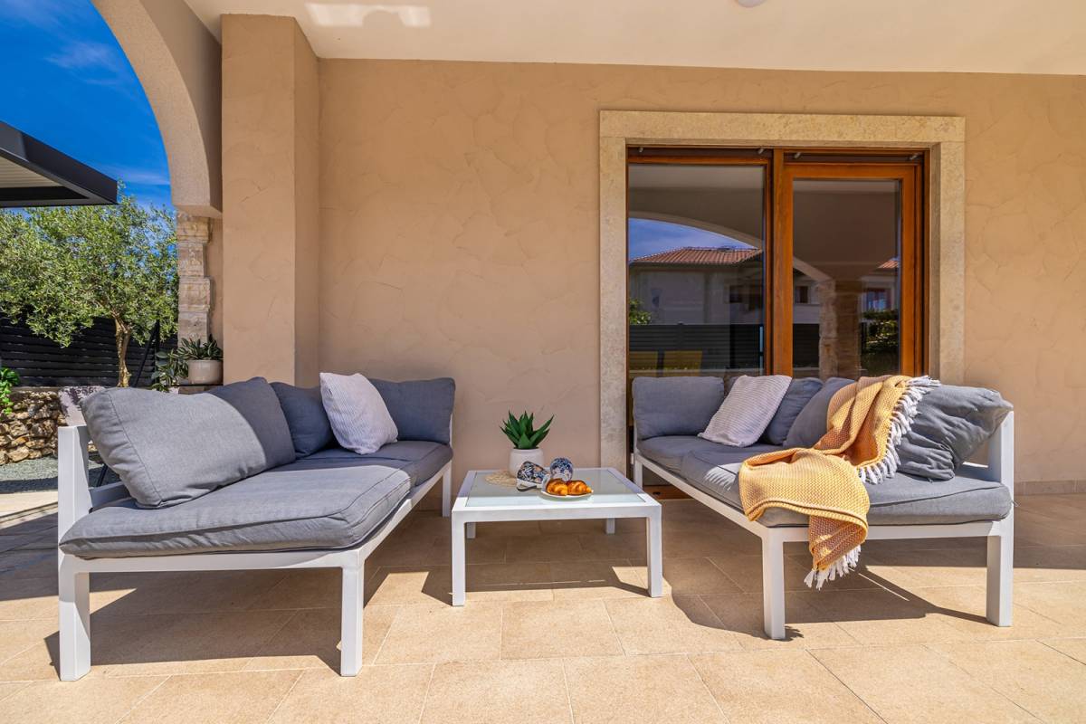 Uz bazen i roštilj, prednosti ove nekretnine uključuju i vanjski tuš, privatnost okućnice te blizinu osnovnih sadržaja i prometnu povezanost s gradom Krkom i obalom. U blizini se nalazi i dječje igralište.