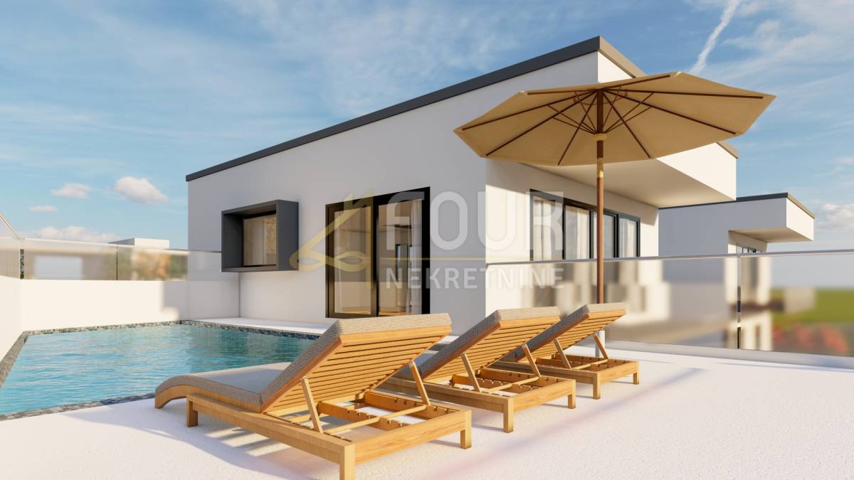 Prodaje se moderna dvojna vila s bazenom na otoku Krku, u izgradnji, s planiranim dovršetkom u listopadu 2026. Vila je projektirana kao visoka prizemnica s krovnom terasom, a zahvaljujući promišljenom rasporedu prostora i kvalitetnoj gradnji pruža iznimnu udobnost za boravak tijekom cijele godine.