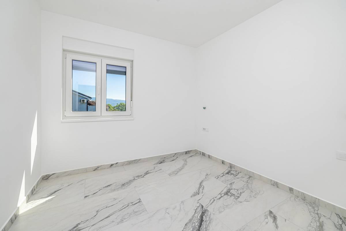 Na drugom katu moderne novogradnje u Čižićima, smješten je ovaj svijetao i prostran dvosobni apartman, s vlastitim ulazom i otvorenim pogledom na more. Lokacija zgrade na mirnoj uzvisini jamči tišinu i privatnost, dok je more udaljeno svega nekoliko minuta.