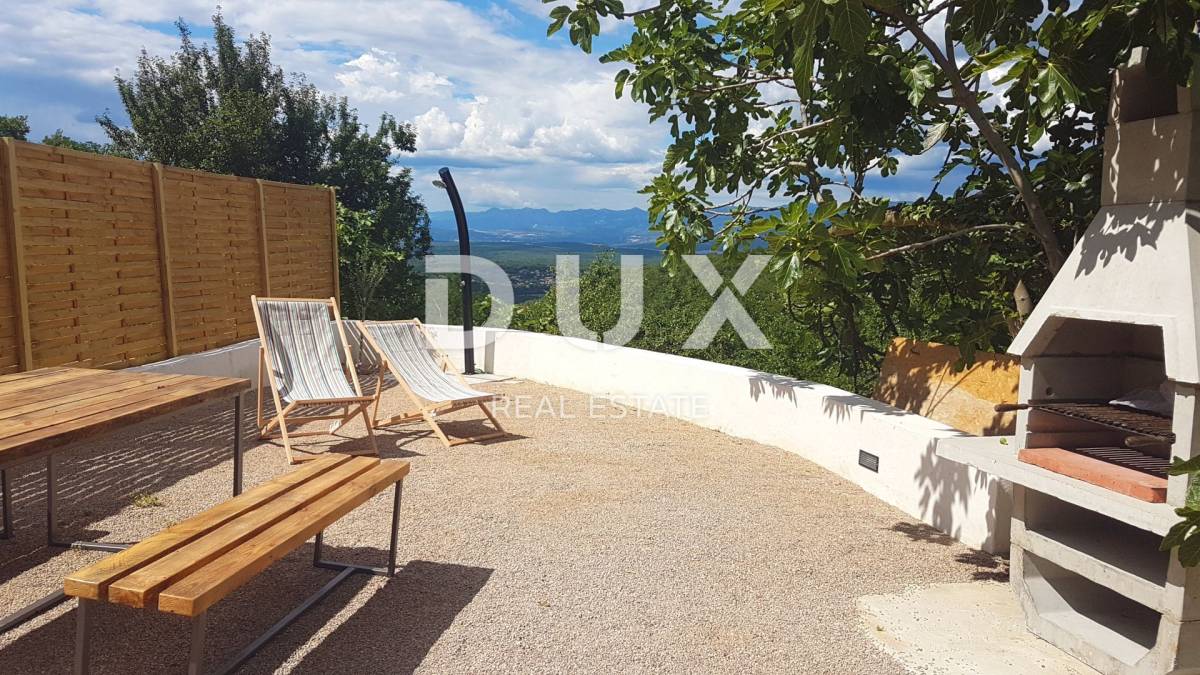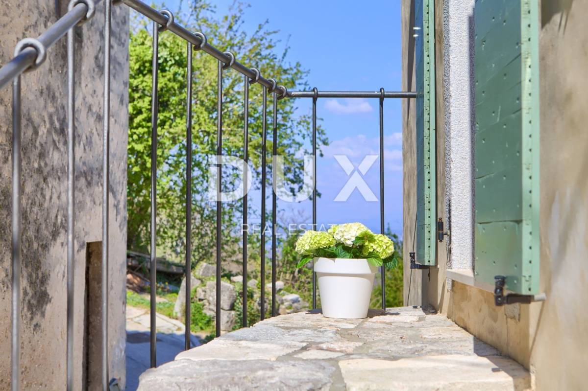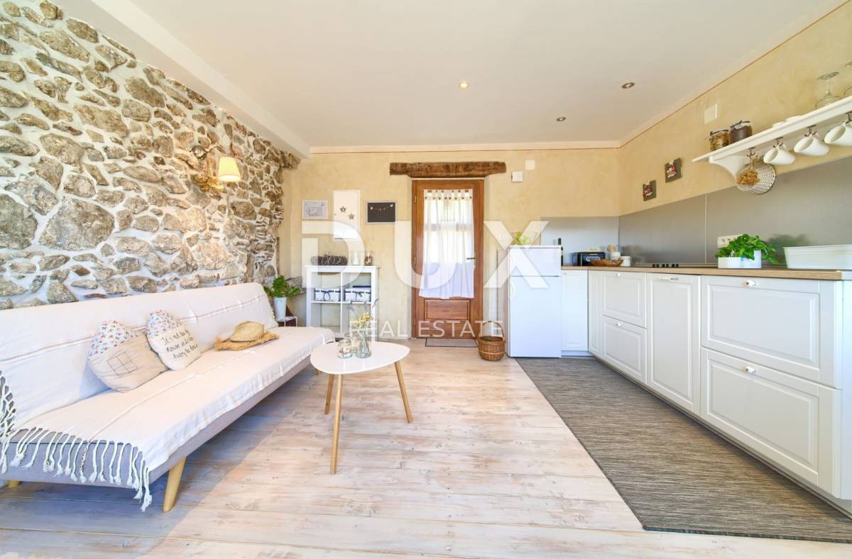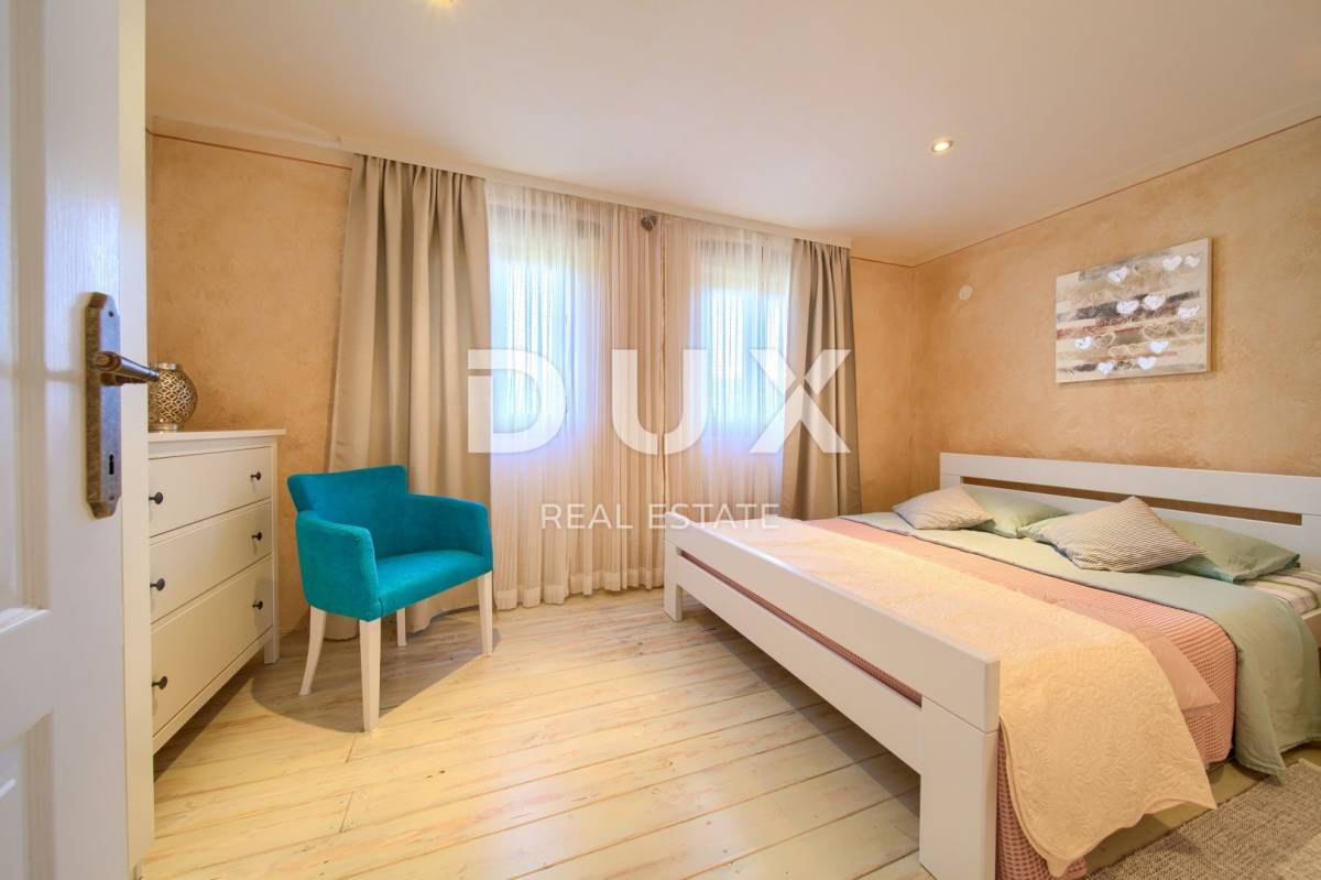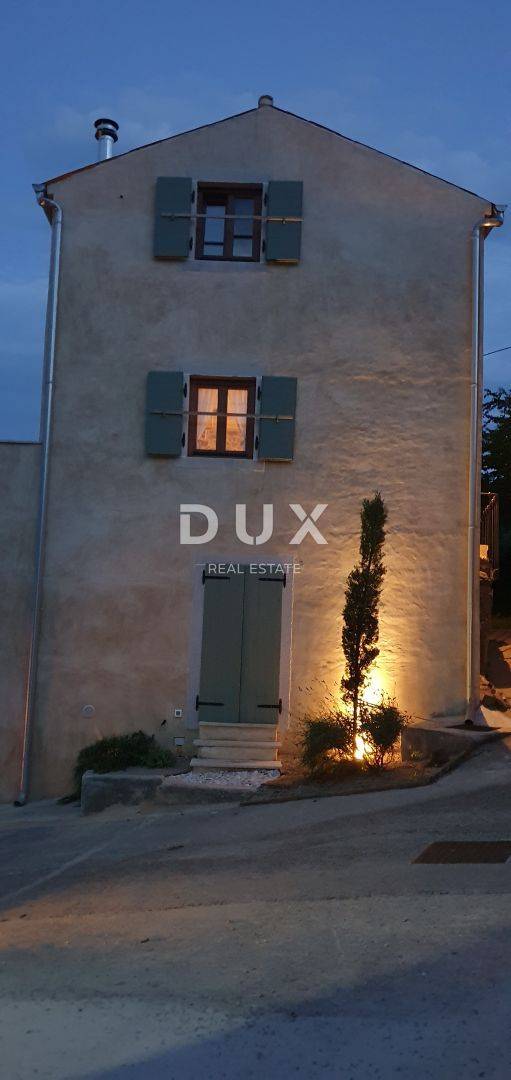 Nalazi se na mirnoj lokaciji u mjestu Dobrinj s pogledom na more i zelenilo, a opet na manje od 100 metara do trgovine i restorana. Kuća je potpuno renovirana 2016. godine, odnosno izgrađena iz temelja modernim tehnikama gradnje. Na lijepo uređenoj okućnici, nalazi se jacuzzi, natkrivena terasa, te dva spremišta i dva parkirna mjesta. U prizemlju kuće se nalazi jedna spavaća soba, kupaonica dnevni boravak iz kojeg se izlazi na okućnicu. Na prvom katu nalaze se kuhinja i blagovaona iz koje se izlazi na balkon s kojeg se pruža otvoreni pogled. Na drugom katu je još jedna spavaća soba s kupaonicom. Grijanje je na drva i na klima uređaje.