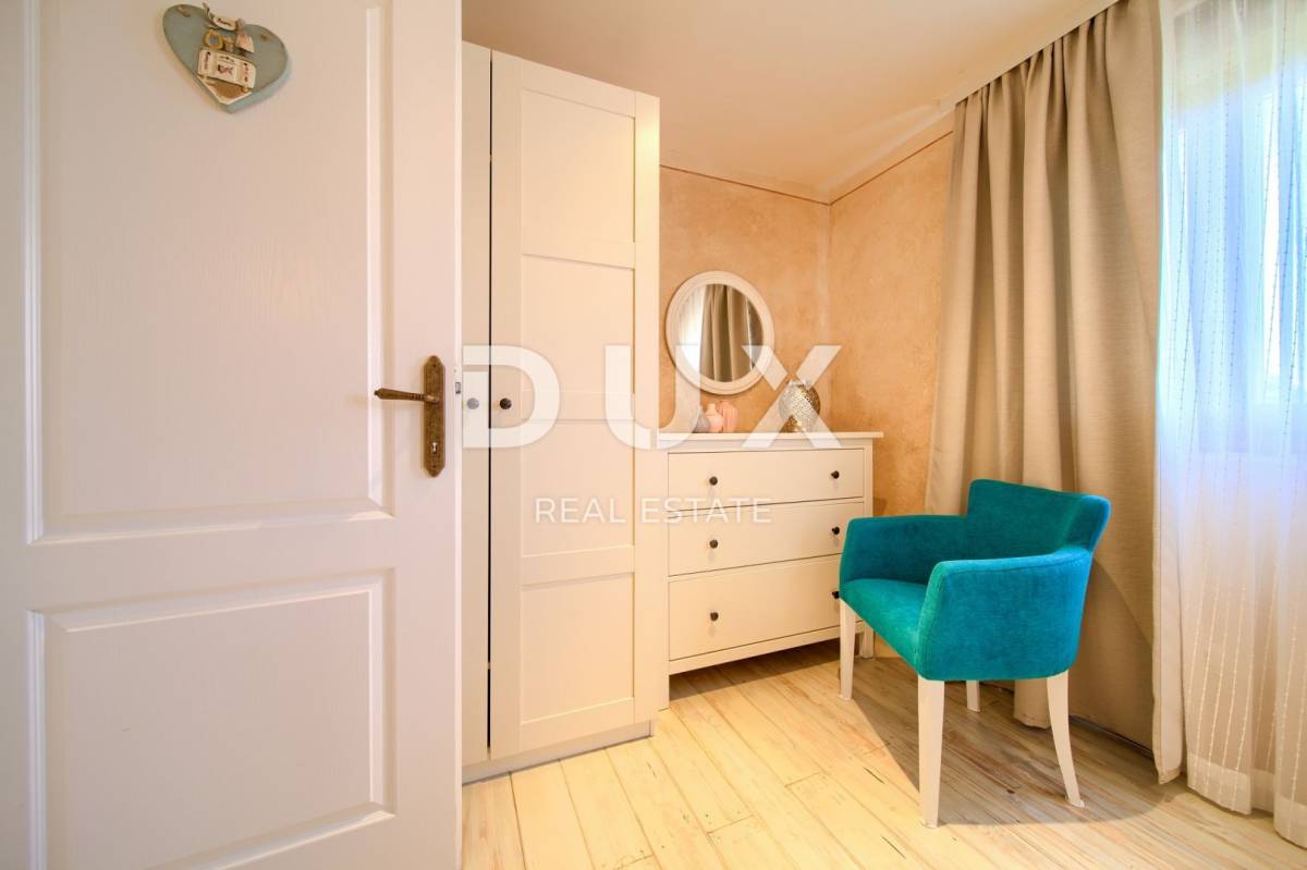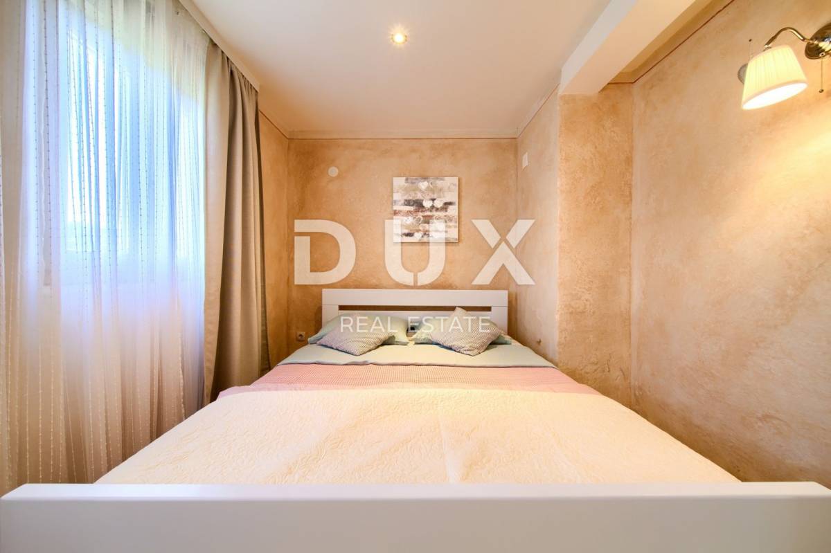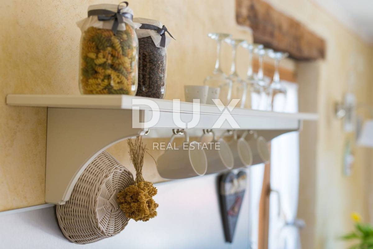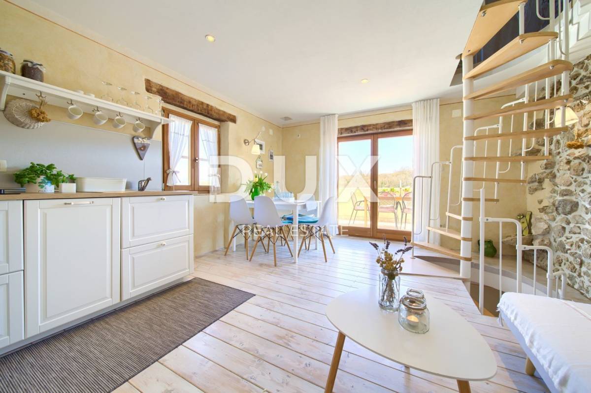 Nalazi se na mirnoj lokaciji u mjestu Dobrinj s pogledom na more i zelenilo, a opet na manje od 100 metara do trgovine i restorana. Kuća je potpuno renovirana 2016. godine, odnosno izgrađena iz temelja modernim tehnikama gradnje. Na lijepo uređenoj okućnici, nalazi se jacuzzi, natkrivena terasa, te dva spremišta i dva parkirna mjesta. U prizemlju kuće se nalazi jedna spavaća soba, kupaonica dnevni boravak iz kojeg se izlazi na okućnicu. Na prvom katu nalaze se kuhinja i blagovaona iz koje se izlazi na balkon s kojeg se pruža otvoreni pogled. Na drugom katu je još jedna spavaća soba s kupaonicom. Grijanje je na drva i na klima uređaje.
