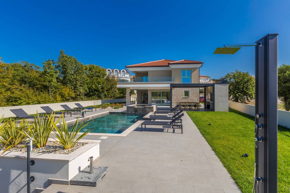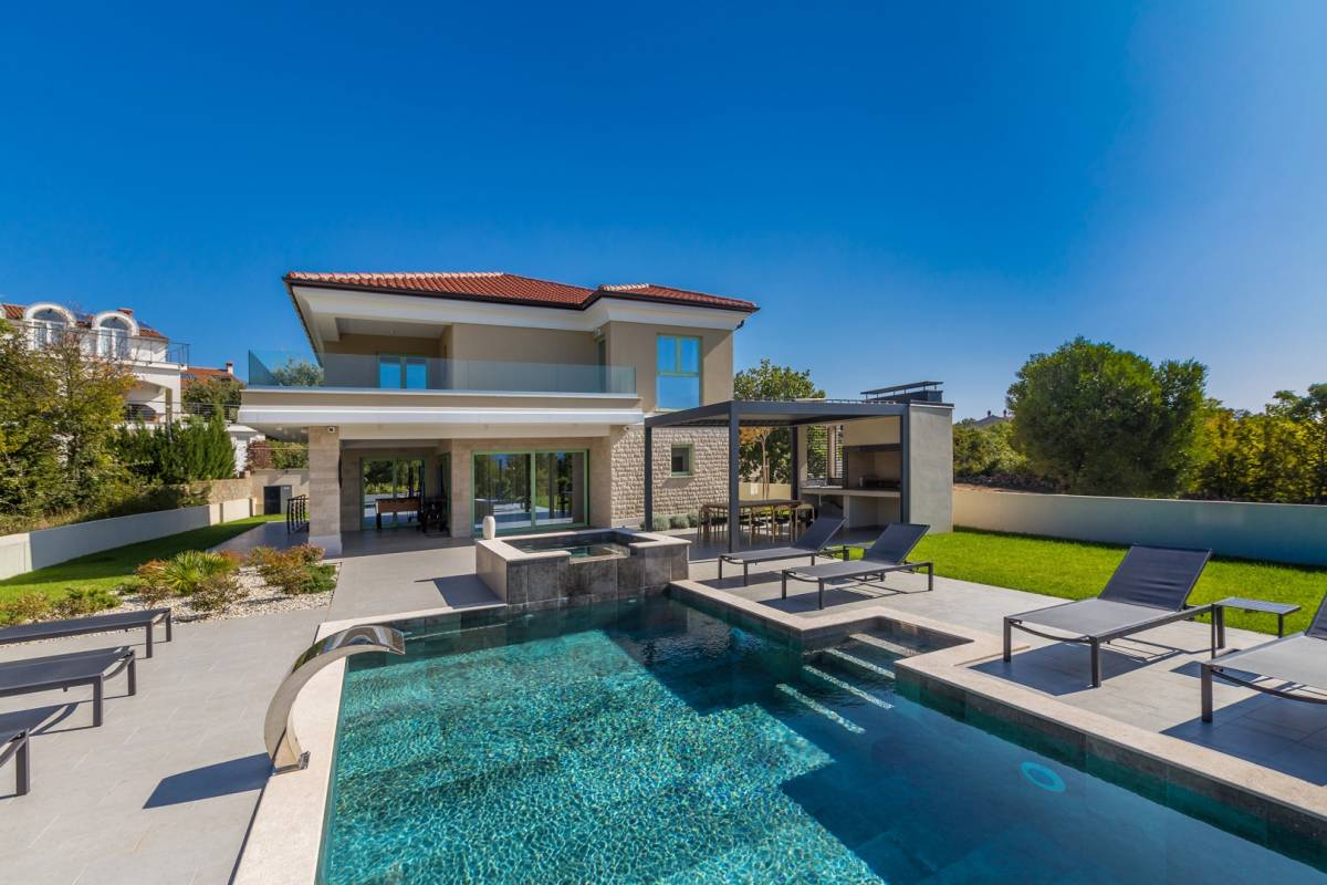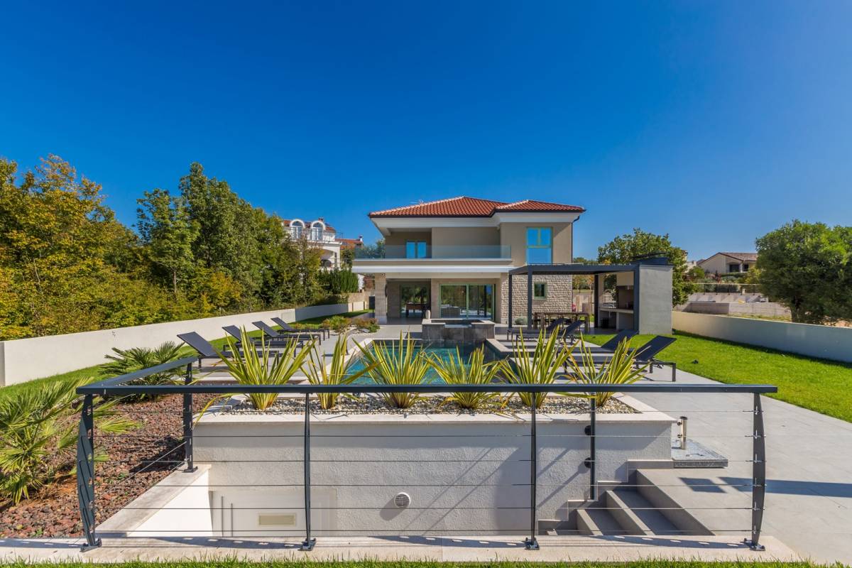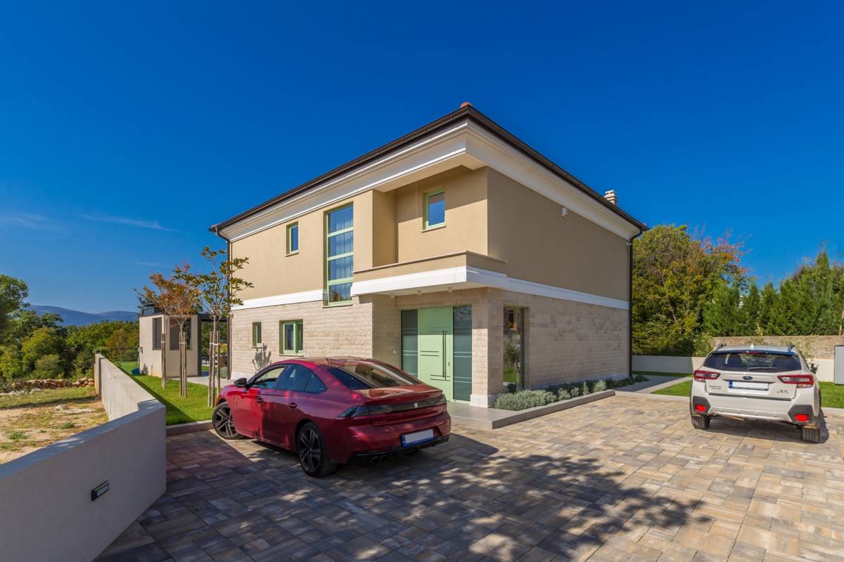 U mirnoj okolici grada Krka, na samo 800 metara od mora, smještena je ova luksuzna vila na uređenoj parceli od 882 m². Vila se proteže na 240 m² stambene površine i predstavlja savršen spoj tradicionalne mediteranske arhitekture i suvremenog dizajna, građena s posebnom pažnjom na detalje i korištenjem najkvalitetnijih materijala.