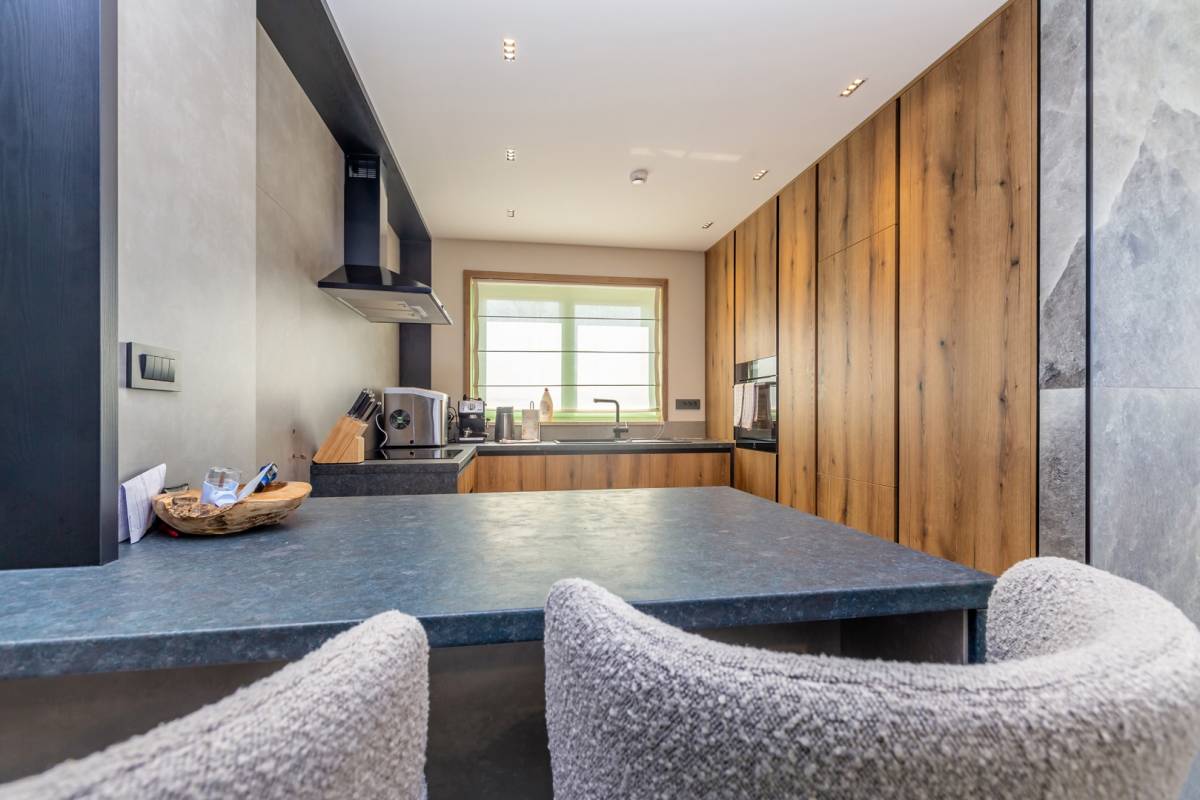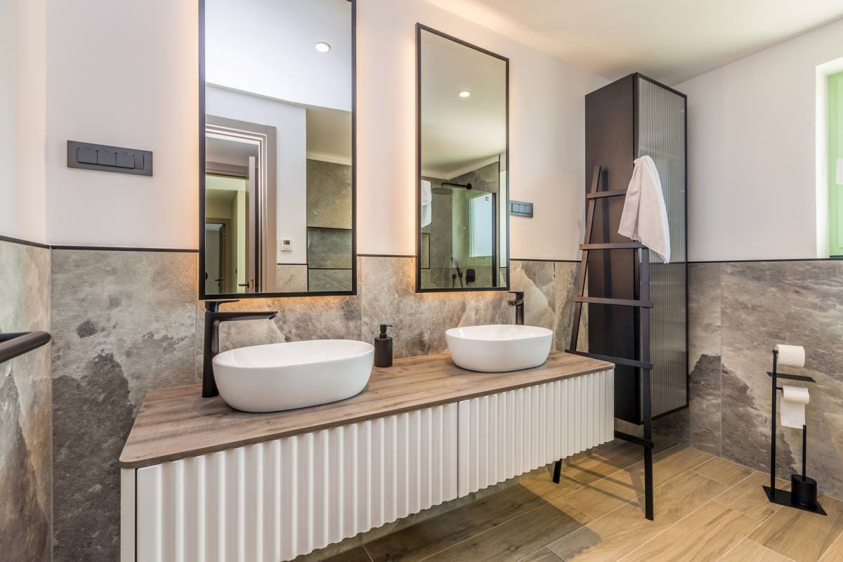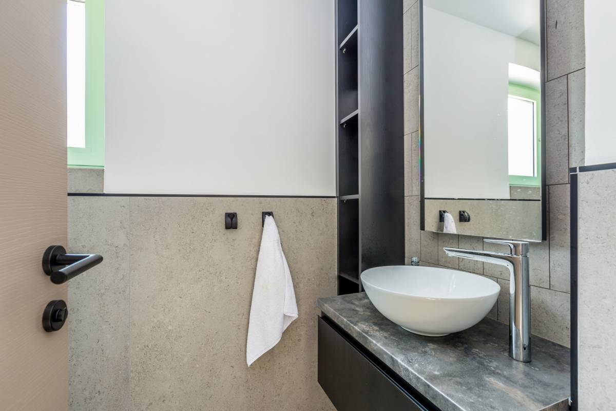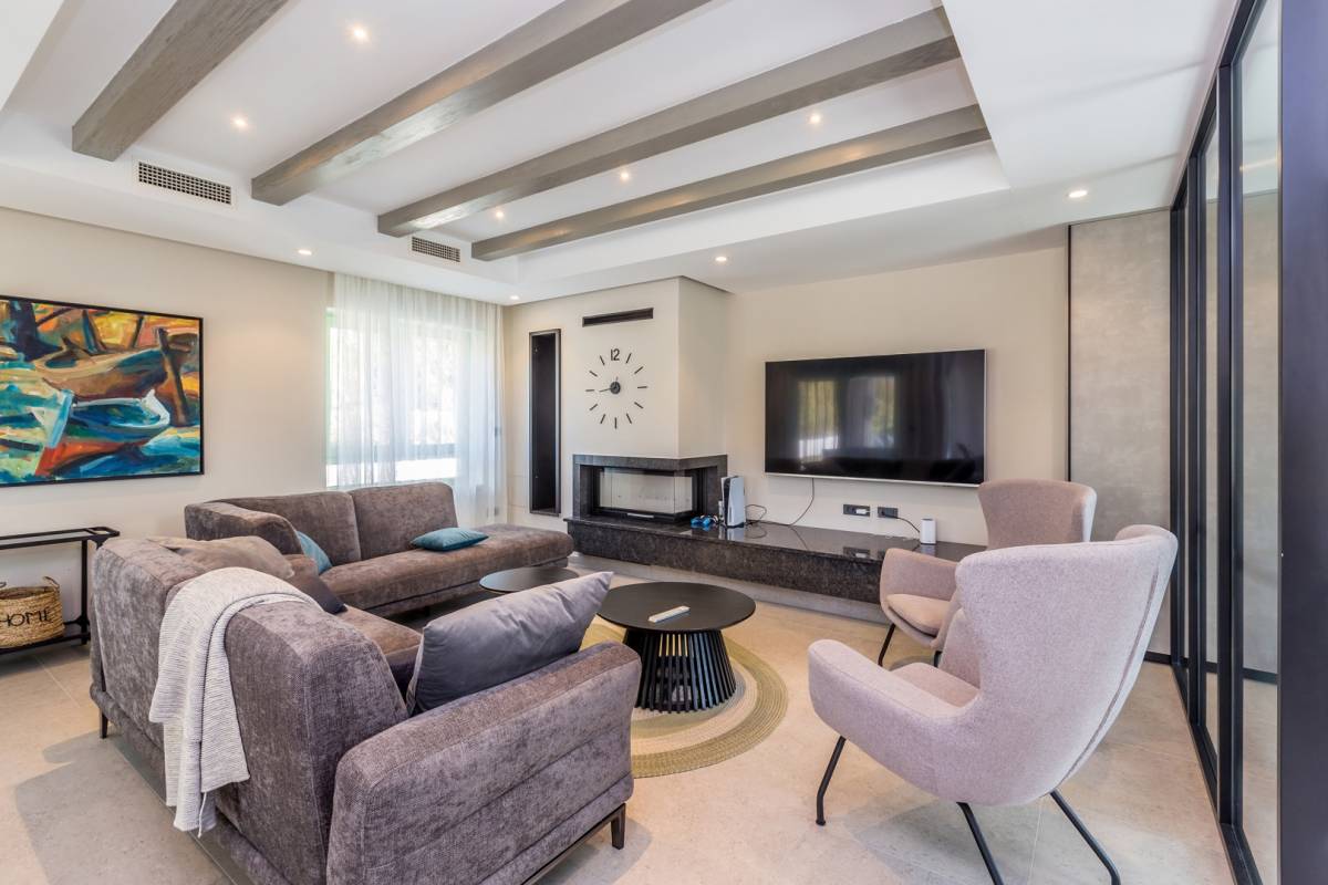 Okućnica je jednako impresivna: uz bazen sa slapom i whirlpoolom za 6 osoba, tu su sunčalište, ljetna kuhinja s roštiljem i više parkirnih mjesta. Ambijentalna rasvjeta, dizajnerski namještaj i suvremena oprema protežu se kroz cijeli interijer, a sustav grijanja i hlađenja temeljen na toplinskoj pumpi s podnim grijanjem i fan-coil sustavima jamči maksimalnu udobnost.