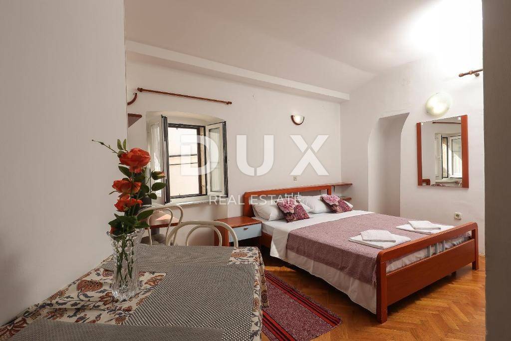 Stara kamena kuća u povijesnom dijelu Grada Krka kompletno je renovirana 2006. godine. Sastoji se od ulaznog atrija koji povezuje 7 apartmana sa odvojenim ulazima. Tri apartmana su jednosobni sa dnevnim boravkom, tri su studio apartmana i jedan je dvoetažni jednosobni apartman sa dnevnim boravkom. Apartmani su opremljeni klima uređajima, televizijom i internetom.
