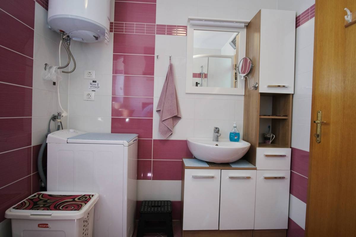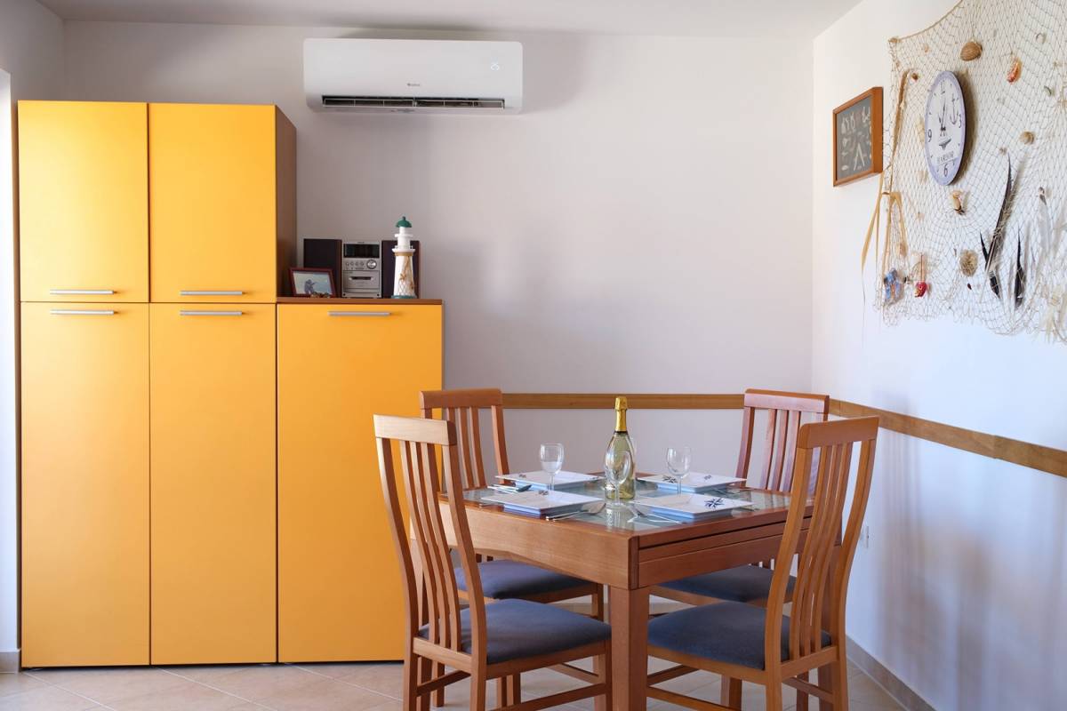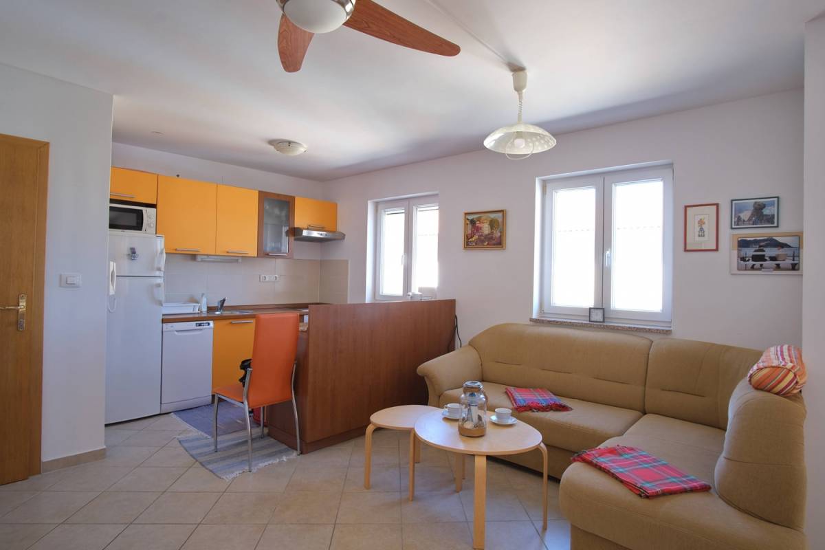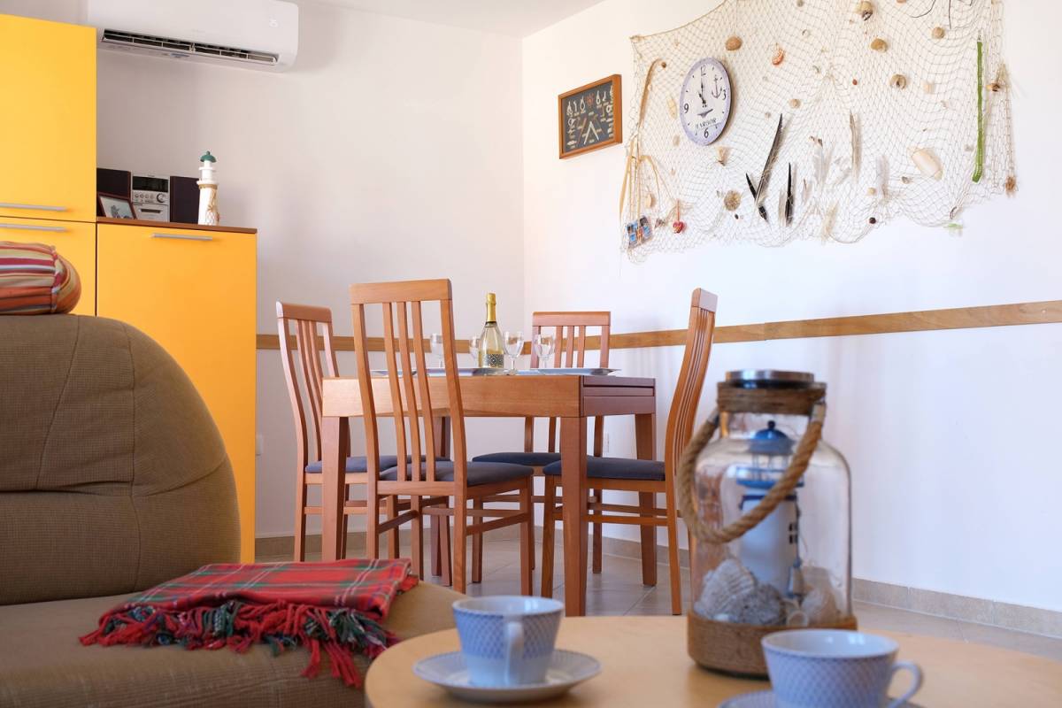 Ukupne površine 57 m², prostor je funkcionalno raspoređen: svijetao dnevni boravak povezan s blagovaonicom i potpuno opremljenom kuhinjom, dvije spavaće sobe, kupaonica, dodatni WC te prostrani balkon s prekrasnim pogledom na more. Apartman je klimatiziran novom jedinicom za grijanje i hlađenje, a pripada mu i vlastito parkirno mjesto ispred zgrade, uključeno u cijenu.