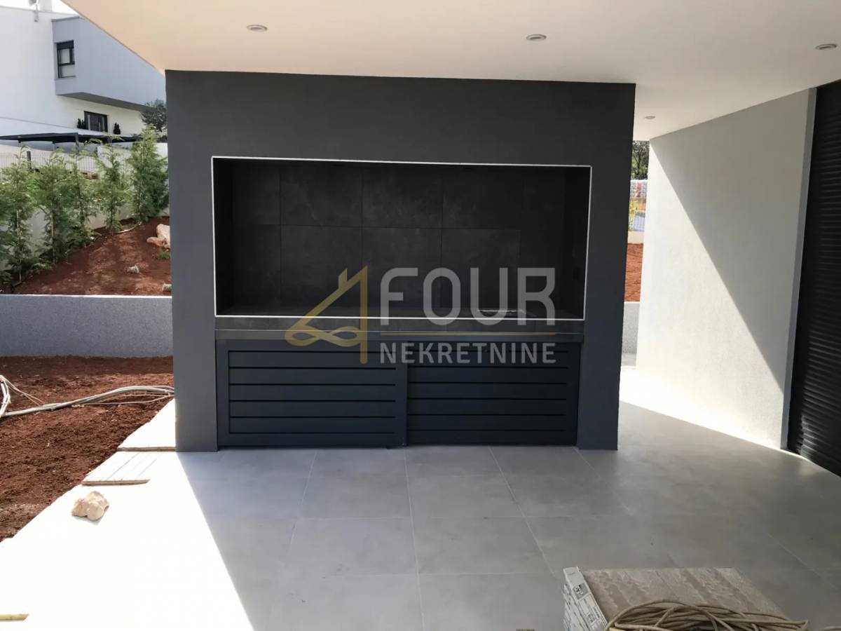 U vanjskom prostoru nalaze se bazen od 48m2, vrt, roštilj, ljetna kuhinja i vanjski tuš, a za parkiranje su predviđena dva natkrivena mjesta.