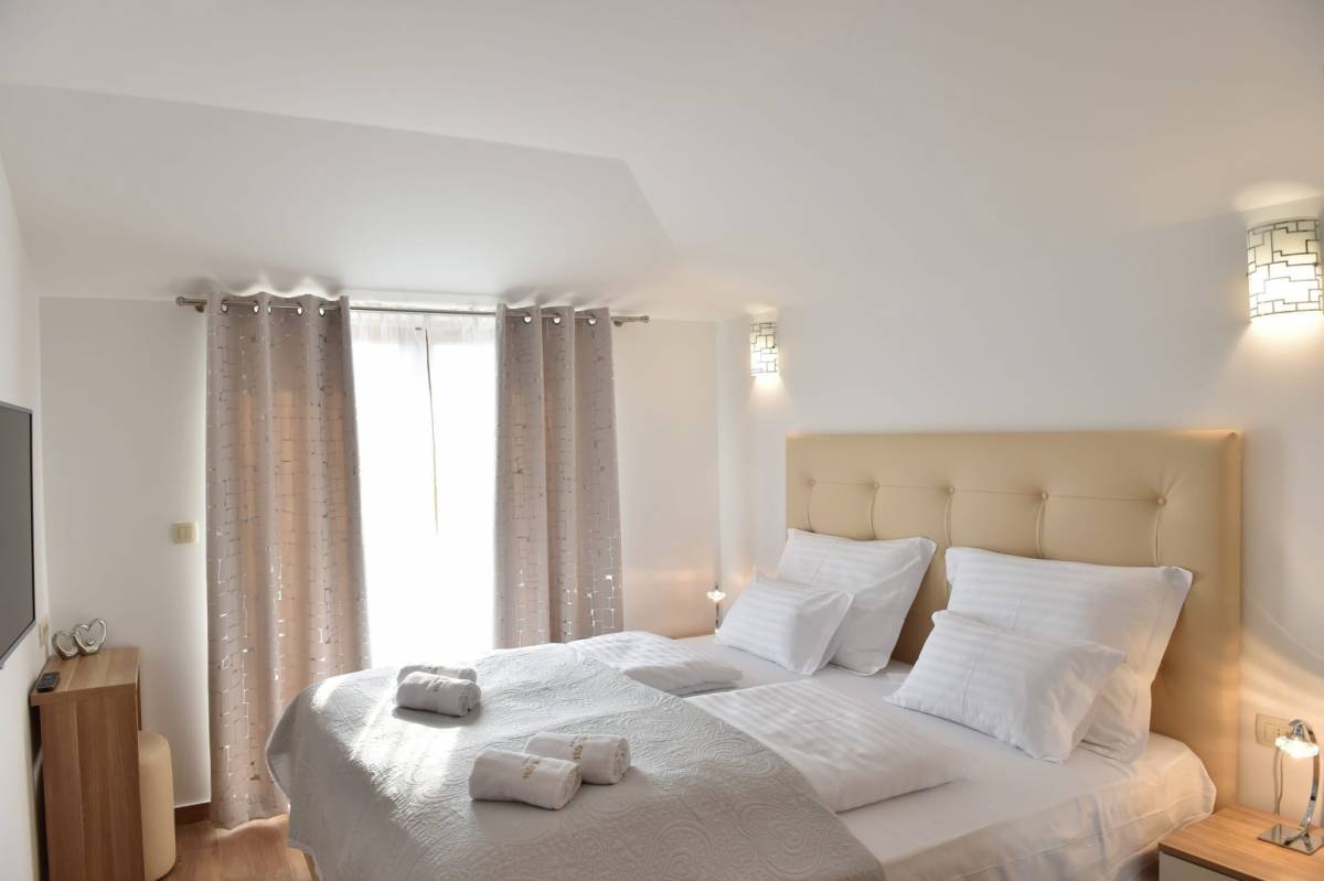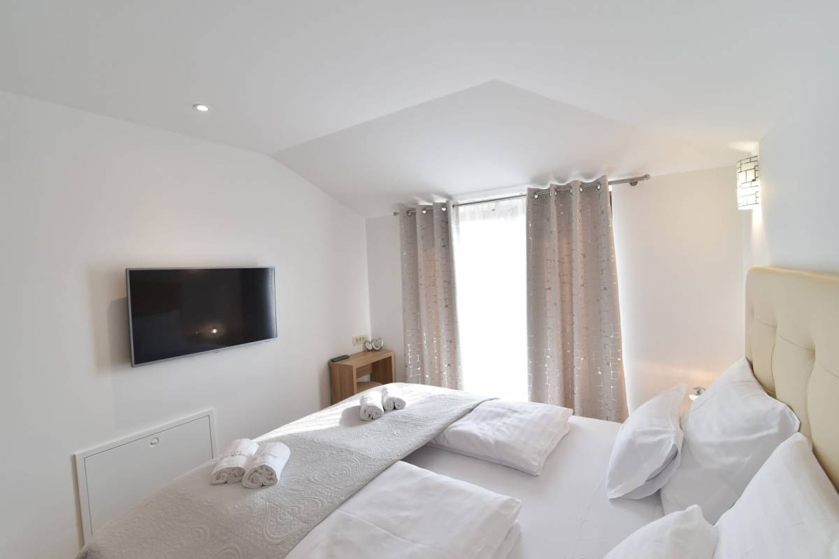Kat vile obuhvaća tri prostrane spavaće sobe, od kojih svaka ima svoju privatnu kupaonicu i izlaz na zajedničku terasu s predivnim pogledom na more. Podrum je zamišljen kao wellness zona, uključujući jacuzzi, prostor za opuštanje i igraonicu, te dodatno sadrži vešeraj, WC i spremište. Na krovu se nalaze solarni paneli za grijanje tople vode, što doprinosi energetskoj učinkovitosti ove nekretnine.