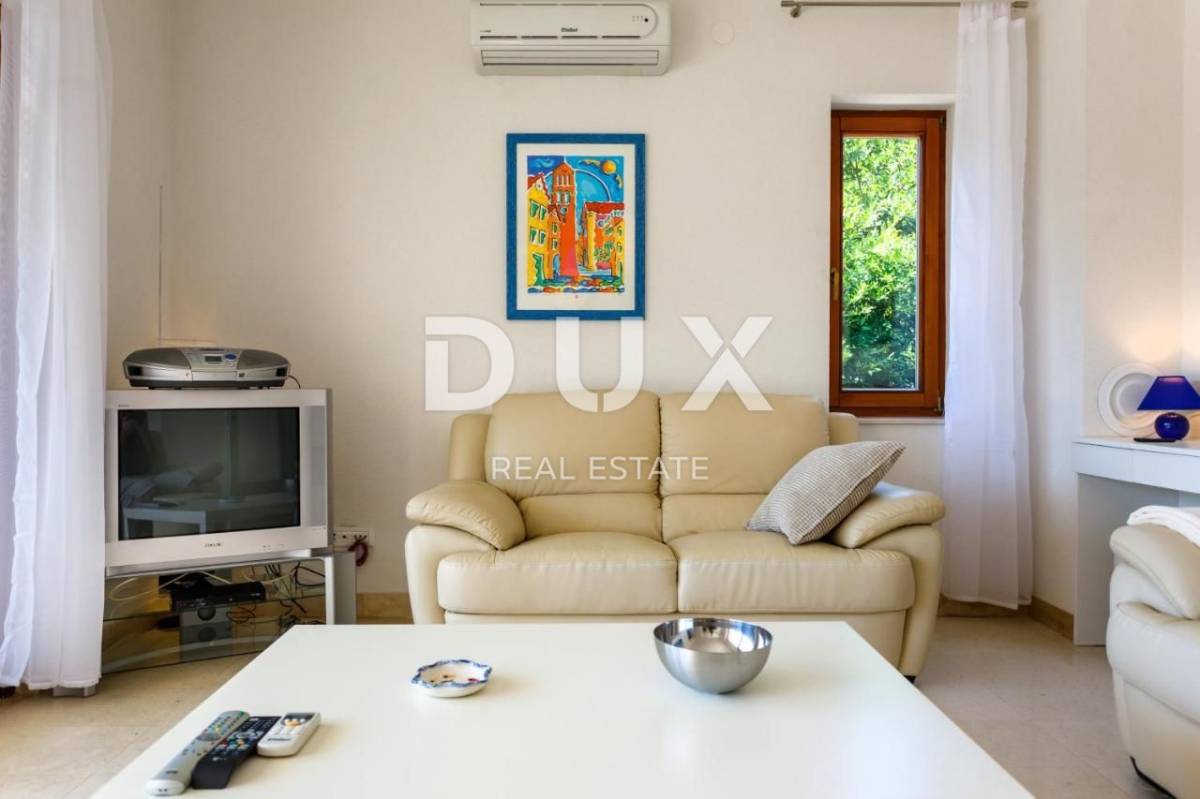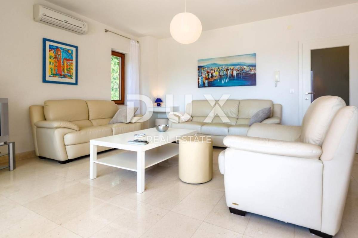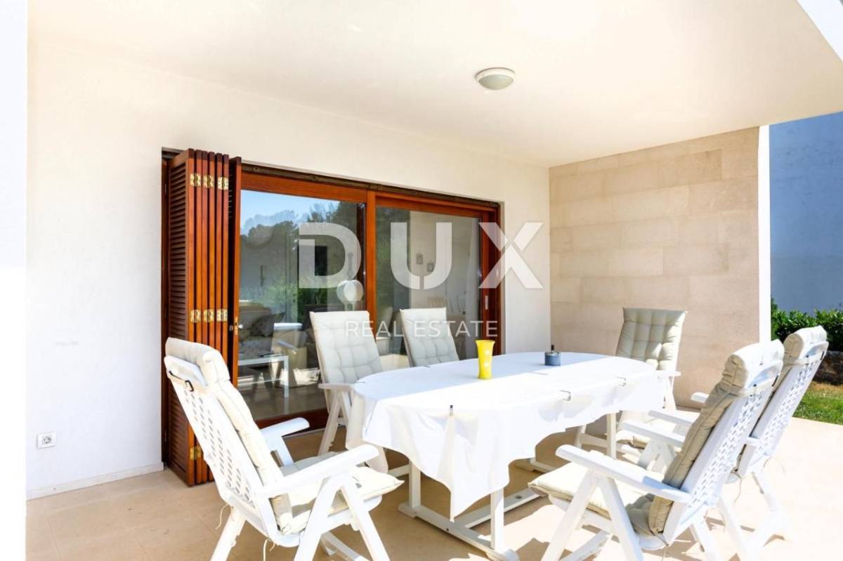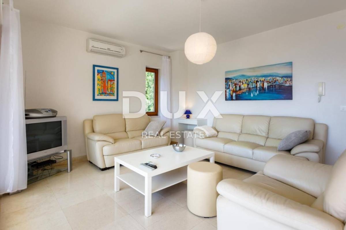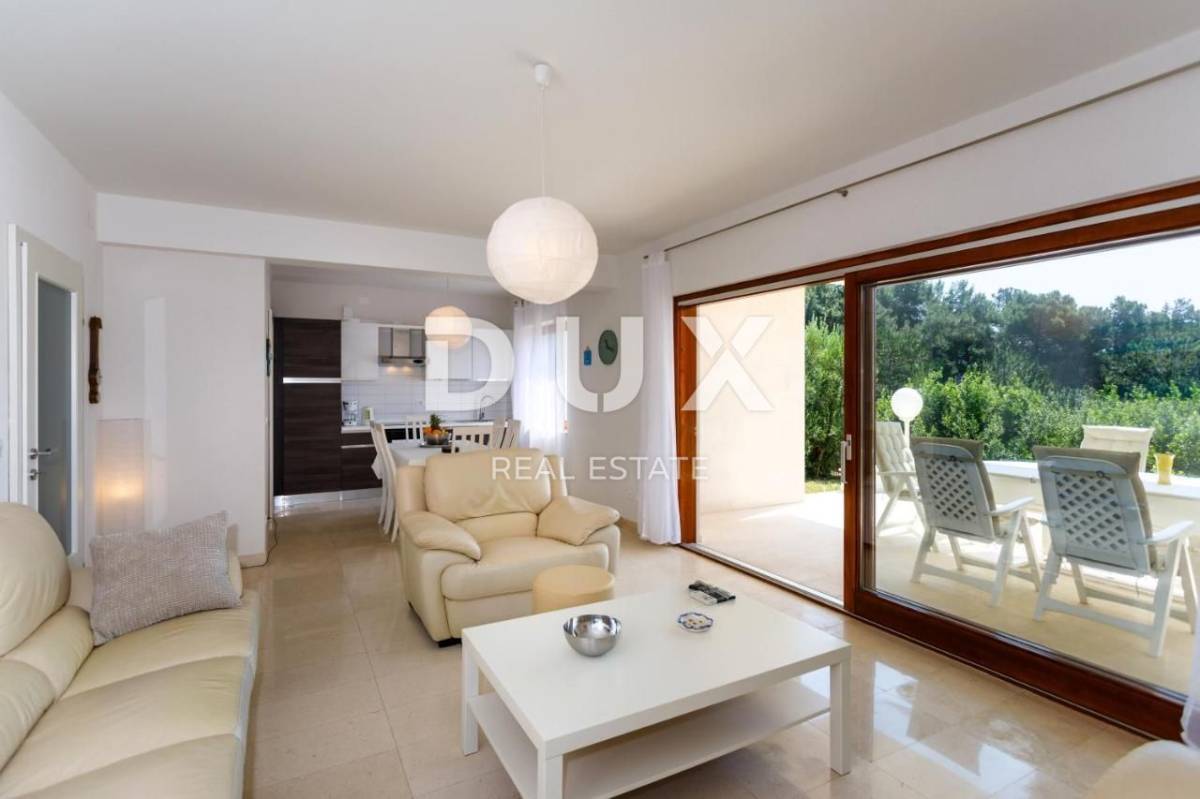Apartman trosobni s dnevnim boravkom na izuzetnoj lokaciji PRVI RED DO MORA. Kuća se nalazi prvi red do mora, odmah iznad plaže, na mirnoj lokaciji, okruženoj zelenilom. Sastoji se od dve spavaće sobe, dve kupaonice, dnevnog boravka, kuhinje i blagovaone, te velike terase s pogledom na more. Izrazita rijetkost na tržištu! Apartman je potpuno nov, građen modernim tehnikama gradnje i opremljen kvalitetnom keramikom i stolarijom. Ima podno grijanje u svim prostorijama, TV, opremljenu kuhinju s perilicom posuđa i pećnicom te 2 kupaonice s kadom ili tušem.