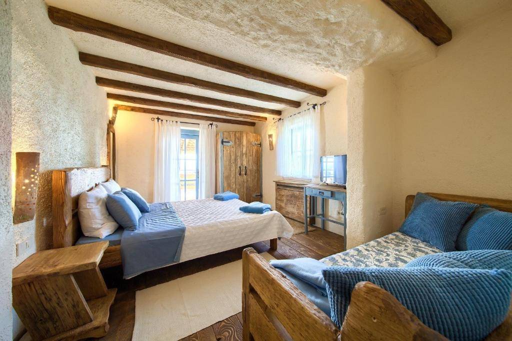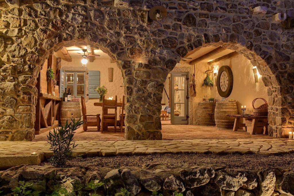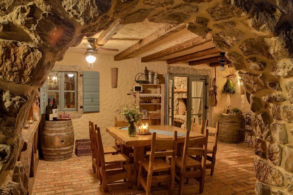 U podrumu se nalazi autentičan vinski podrum – idealan za intimna okupljanja. Prizemlje obuhvaća modernu kuhinju s blagovaonicom i prostrani dnevni boravak s impresivnim kamenim kaminom, iz kojeg se izlazi na natkrivenu terasu okruženu zelenilom. Na katu se nalaze dvije komforne spavaće sobe, elegantna kupaonica s WC-om i velika natkrivena terasa s pogledom na krajolik. U potkrovlju su dodatne dvije sobe i još jedna luksuzna kupaonica – idealno za veće obitelji ili goste.