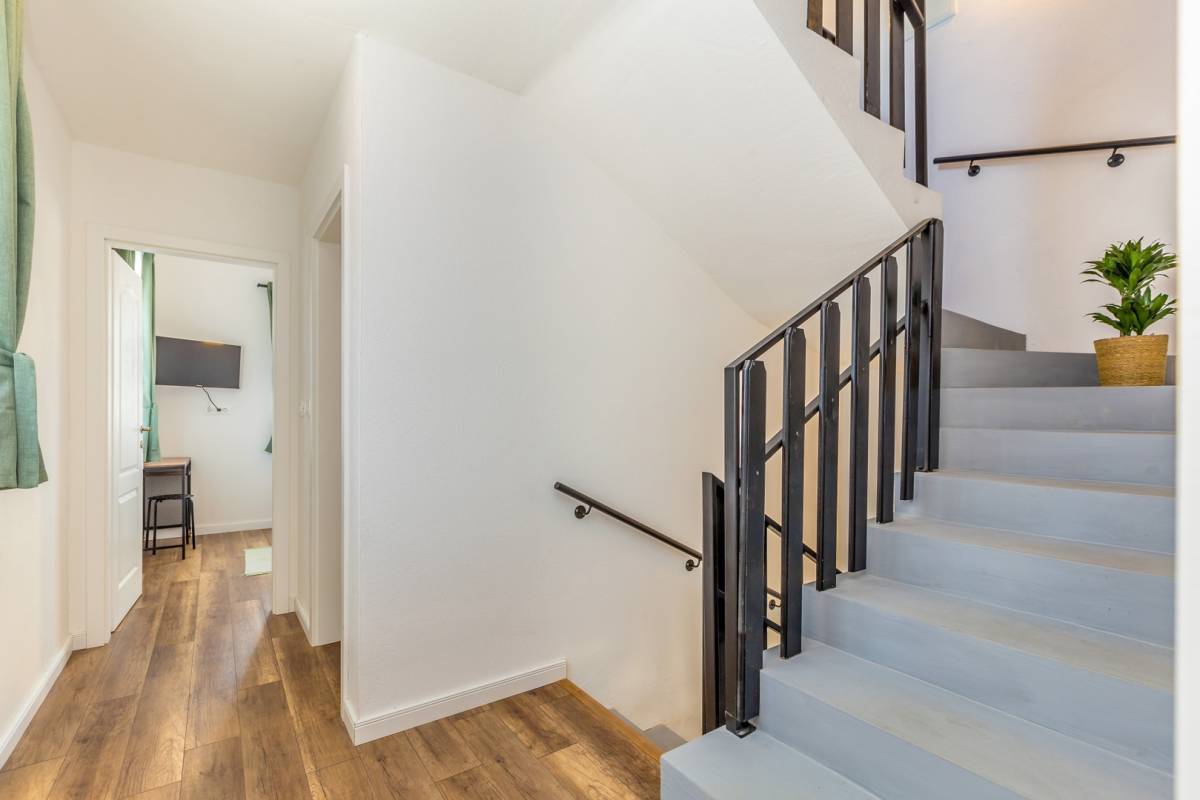 Dvojna kuća s privatnim bazenom koja se sastoji od prizemlja, kata i galerije. Bazen (veličine 21,5 m2) je sa slanom vodom, što je savršena kombinacija za održavanje vode kristalno čistom bez dodavanja klora. Bazen ima unutarnje stepenice za lakši pristup, a uključuje i klupu za sjedenje s mlaznicama.
