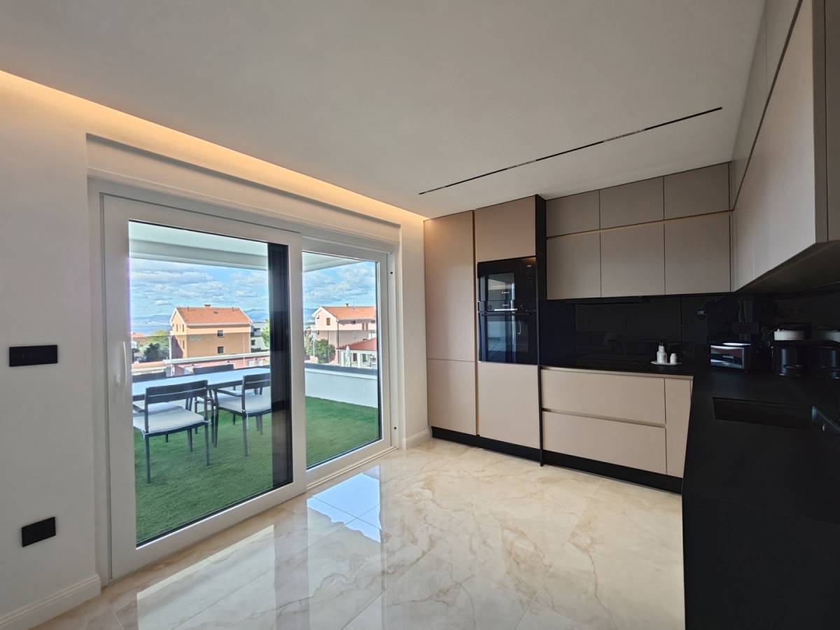 U mirnom dijelu Malinske, među novogradnjama sličnog stila, smjestio se moderno opremljen apartman površine 70 kvadratnih metara, s dodatnom terasom od 19 kvadratnih metara koja pruža pogled na more.