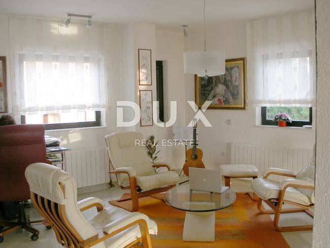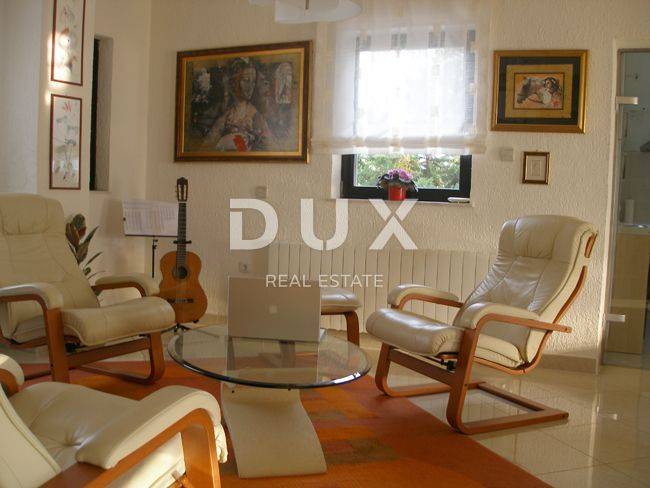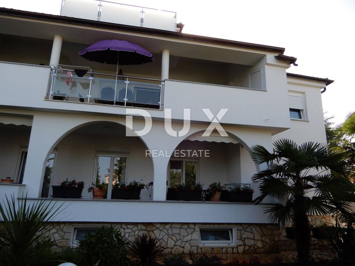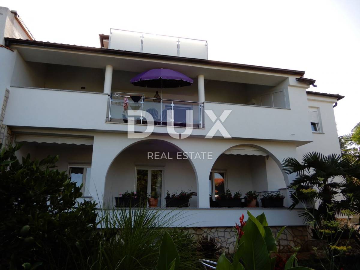 Prekrasna kuća sa garažom, tri parkirna mjesta i velikim vrtom na kojem je sjenica sa roštiljem nalazi se cca 350 m od mora i centra Malinske. Sastoji se od podruma, prizemlja, prvog kata i visokog potkrovlja sa ukupno 300 m2 stambenog prostora.
