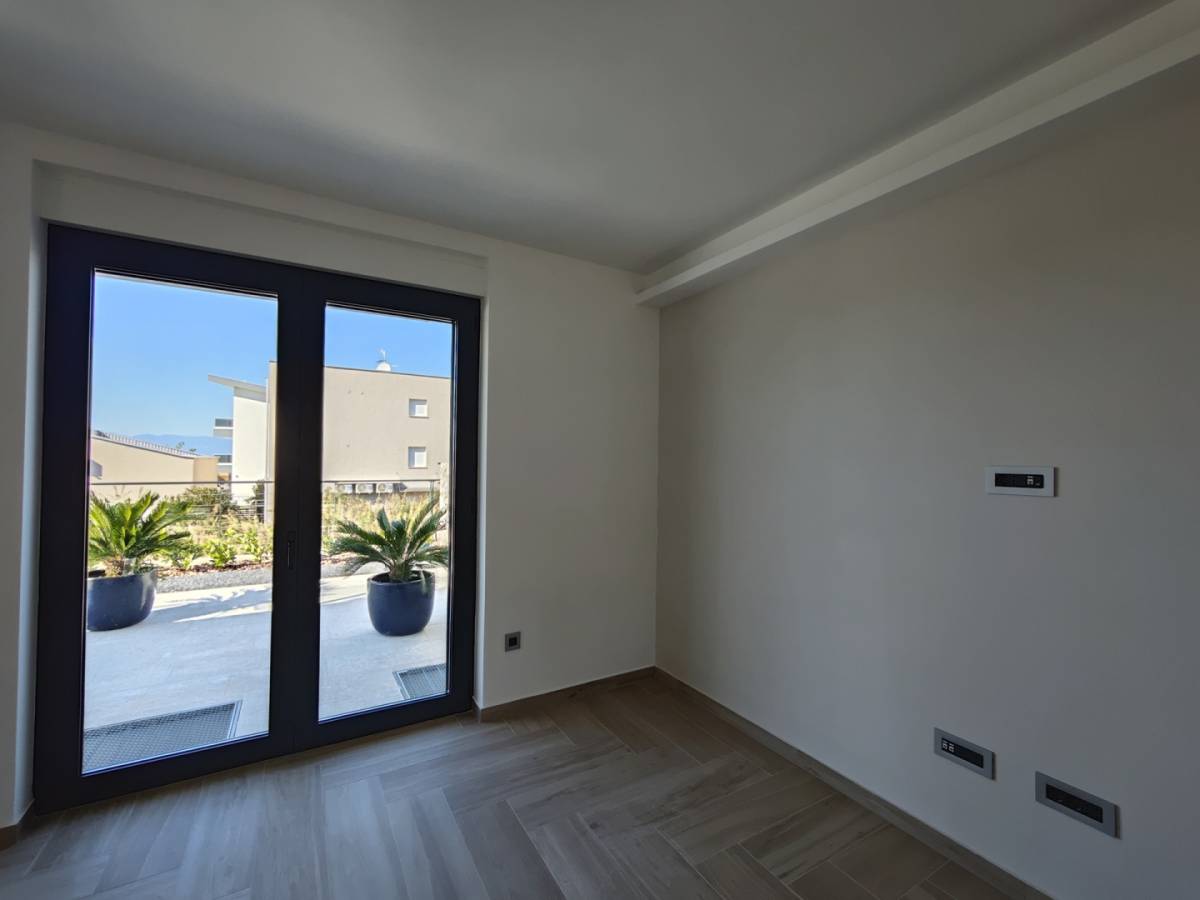 U prizemlju dominira otvoreni dnevni prostor koji povezuje sofisticirani dnevni boravak s dizajnerskom kuhinjom i blagovaonicom. Dvije prostrane terase u prizemlju, ukupne površine 40 m², proširuju životni prostor prema van, omogućujući uživanje u pogledu i mirisima Mediterana u svakom trenutku dana. Dodatna terasa površine 21,6 m², smještena ispod bioklimatske pergole s izlazom iz kuhinje, stvara savršen ambijent za objedovanje na otvorenom.