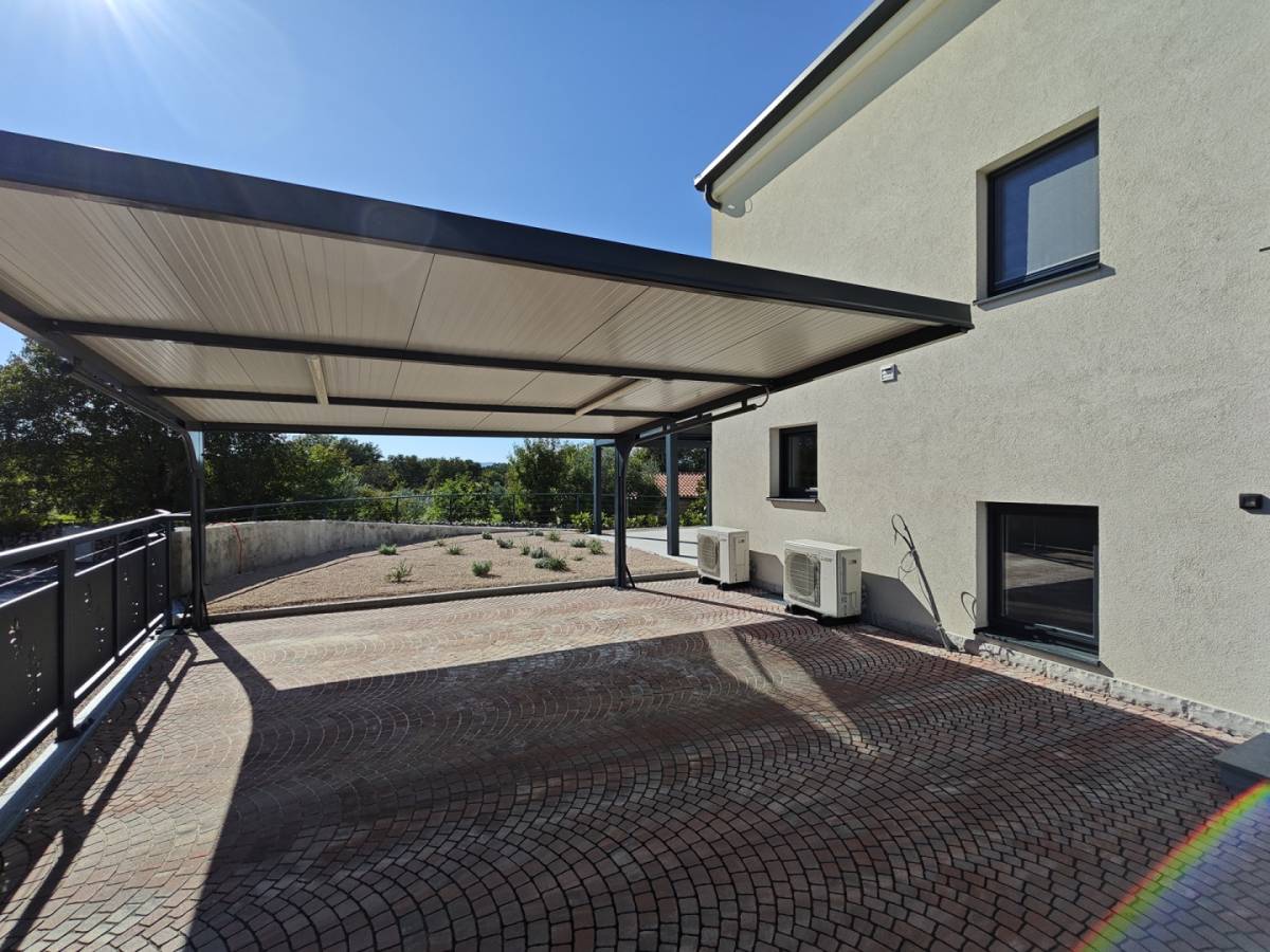 Uređena okućnica površine 312 m² pruža osjećaj potpune privatnosti. Bazen s vodenom površinom od 27 m² opremljen je sustavom elektrolize vode, klorifikatorom, pumpom za protustrujno plivanje i masažnim mlaznicama, savršeno za opuštanje i rekreaciju. Sunčalište uz bazen i dva natkrivena parkirna mjesta (25 m²) upotpunjuju funkcionalnost i estetiku vanjskog prostora.
