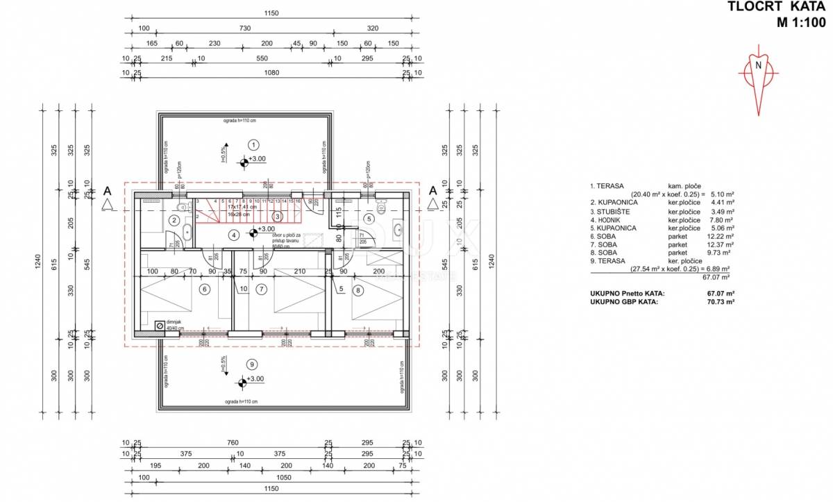 --> Kat (GBP 70,70 m²) obuhvaća tri spavaće sobe, dvije kupaonice, hodnik i dvije prostrane terase s pogledom na more.