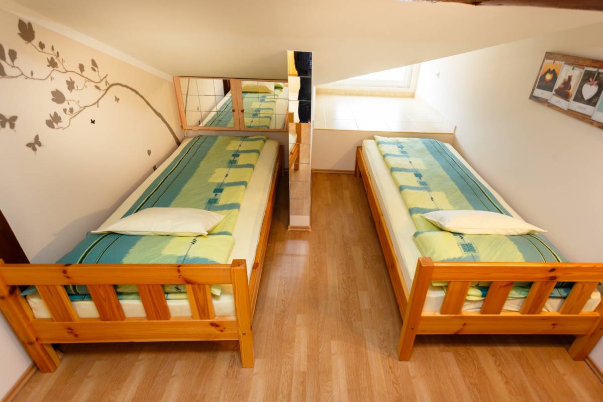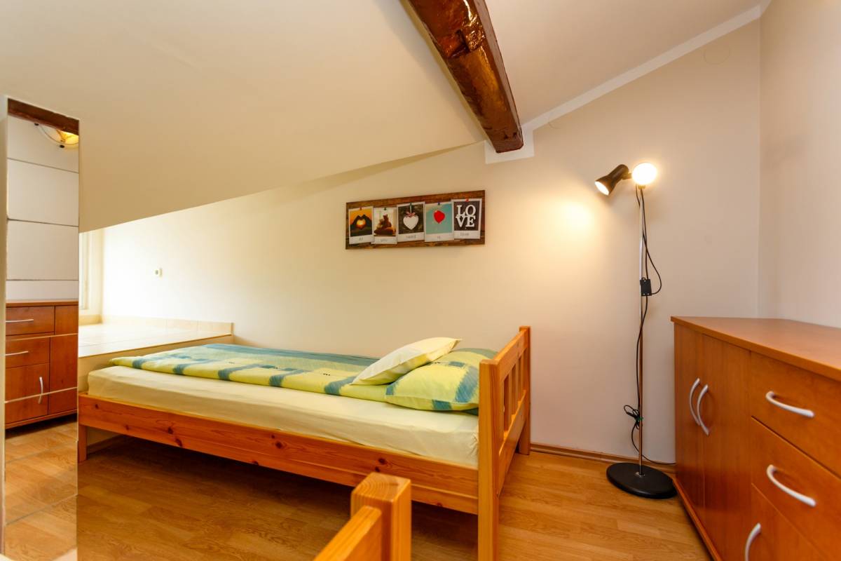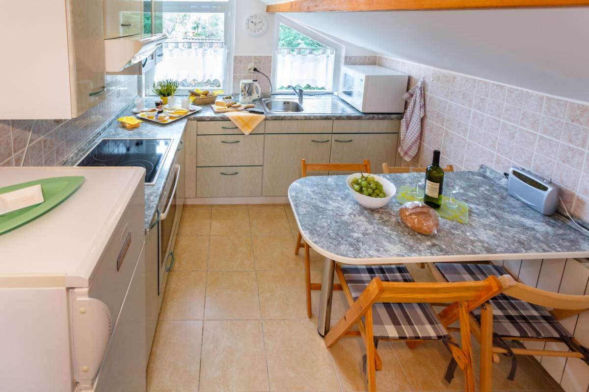 Kuća je površine 300 m2 ,koncipirana u 4 apartmanske jedinice. U prizemlju se nalazi jedan studio apartman i jedan dvosoban apartman. Na 1.katu je trosoban apartman te u visokom potkrovlju još jedan dvosoban. Kuća ukupno raspolaže sa 10 spavaćih soba, 6 kupaona i 3 dnevna boravka. U suterenu se nalazi još jedan studio apartman koji je predviđen za održavanje objekta, odnosno smještaj osobe koja će voditi domaćinstvo, te skladištenje i pranje opreme.