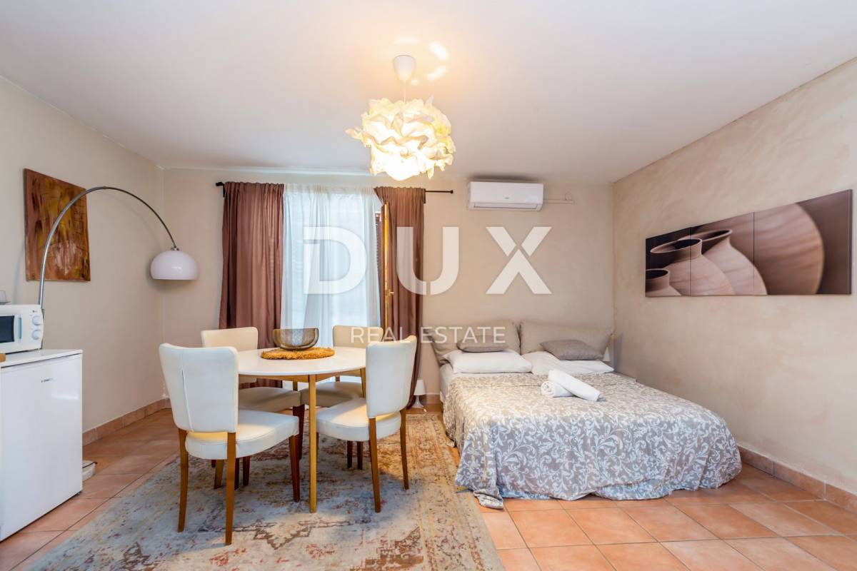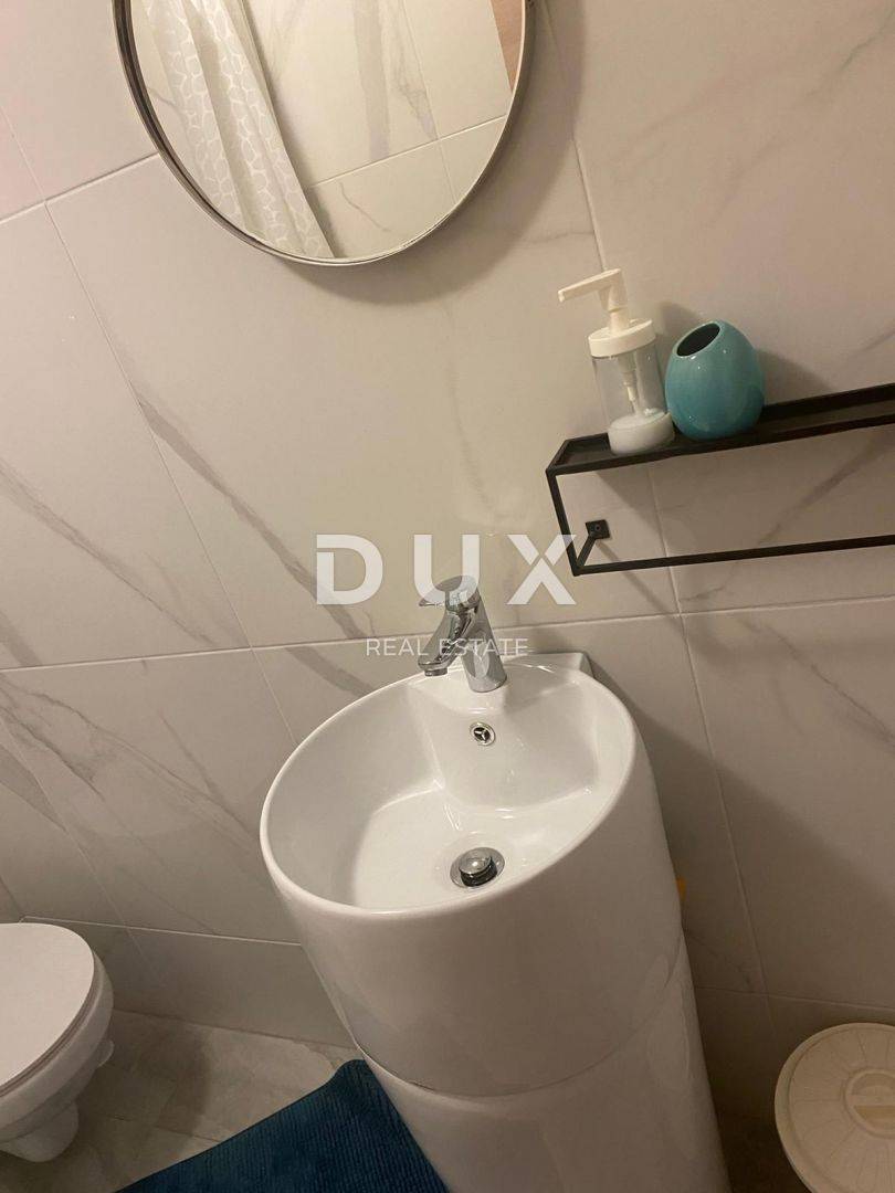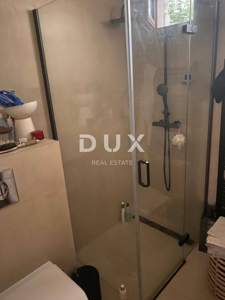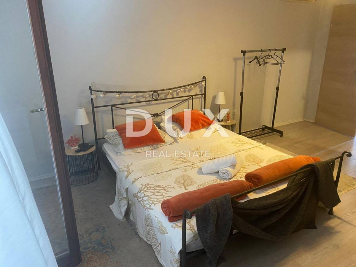 Nalazi se na oko 450 metara od mora na mirnoj lokaciji. Etaža je podijeljena na dva jednaka apartmana koji se sastoje od kupaonice, spavaće sobe, kuhinje, blagovaonice i dnevnog boravka, te ukupno s tri terase. Objekt se prodaje potpuno namješten, a pripada mu jedno parkirno mjesto. Ovo je dobra opcija za iznajmljivanje, ali i za vlastito uživanje u dobroj poziciji i moru.