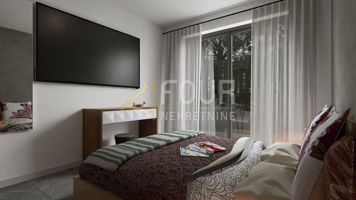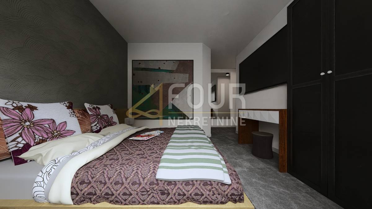 Unutarnji raspored zamišljen je kao trosoban stan s dnevnim boravkom, s naglaskom na udobnost i kvalitetu života. Opremljen je podnim grijanjem, klimom, PVC stolarijom s električnim roletama te nudi savršen spoj modernog dizajna i praktičnosti. Stanu pripadaju i dva vanjska parkirna mjesta, a udaljen je svega 300 metara od mora.