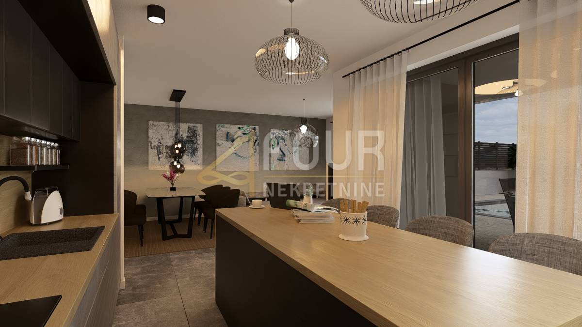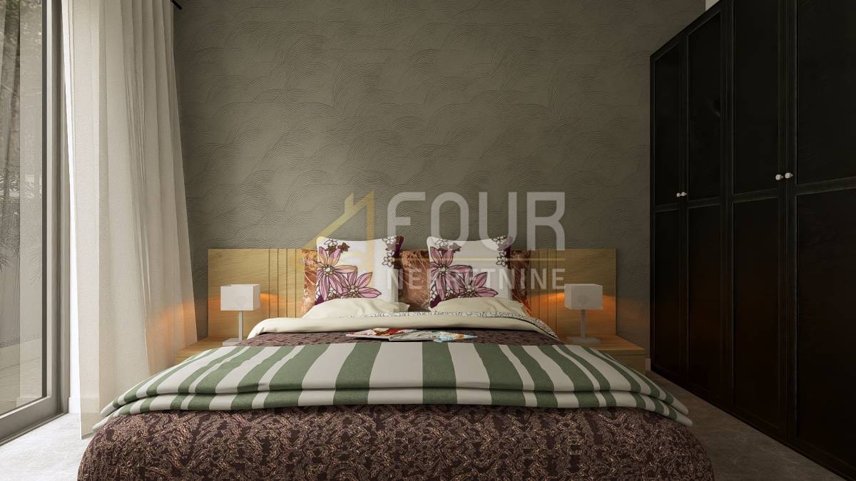 Smješten je u prizemlju te mu pripada vlastiti bazen i uređena okućnica od 40 m2. Ukupne je površine 107,86 m2, od čega je prostrana terasa od 15,71 m2 idealna za uživanje u pogledu na more.