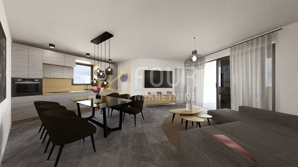 Moderan stan u novogradnji u Vrbniku na otoku Krku, u manjoj stambenoj zgradi s ukupno šest apartmana.