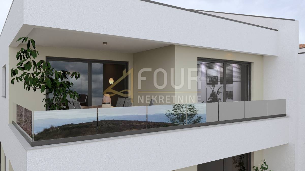Smješten je na prvom katu, ukupne je površine 107,86 m2, od čega je prostrana terasa od 15,71 m2 idealna za uživanje u pogledu na more.
