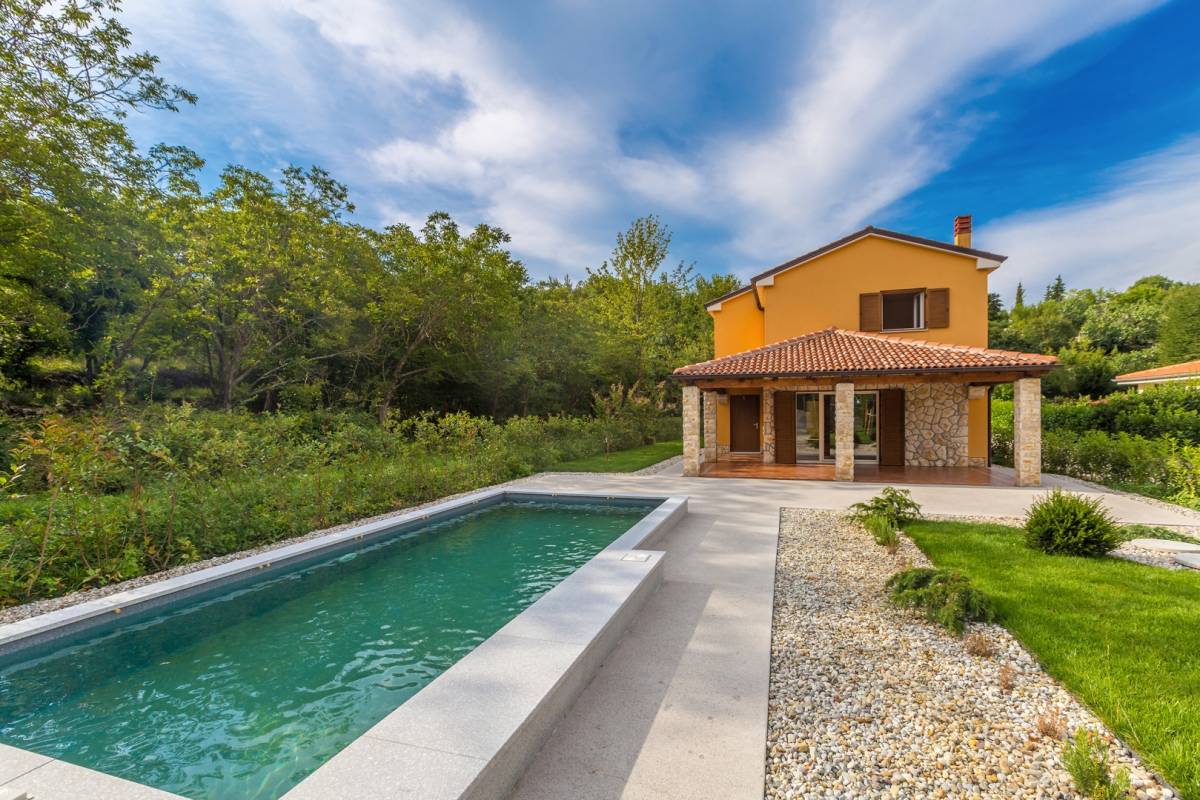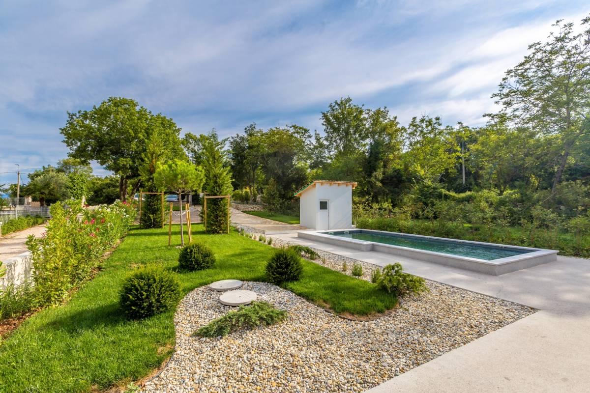Na mirnoj lokaciji u zelenilom bogatoj okolici Dobrinja na otoku Krku, smjestila se ova šarmantna kuća s bazenom, idealna za obiteljski odmor ili luksuzni najam. Okućnica površine čak 1100 m² pruža potpunu privatnost, s pažljivo uređenim vrtom, sunčalištem uz bazen i dodatnom vrtnom kućicom.