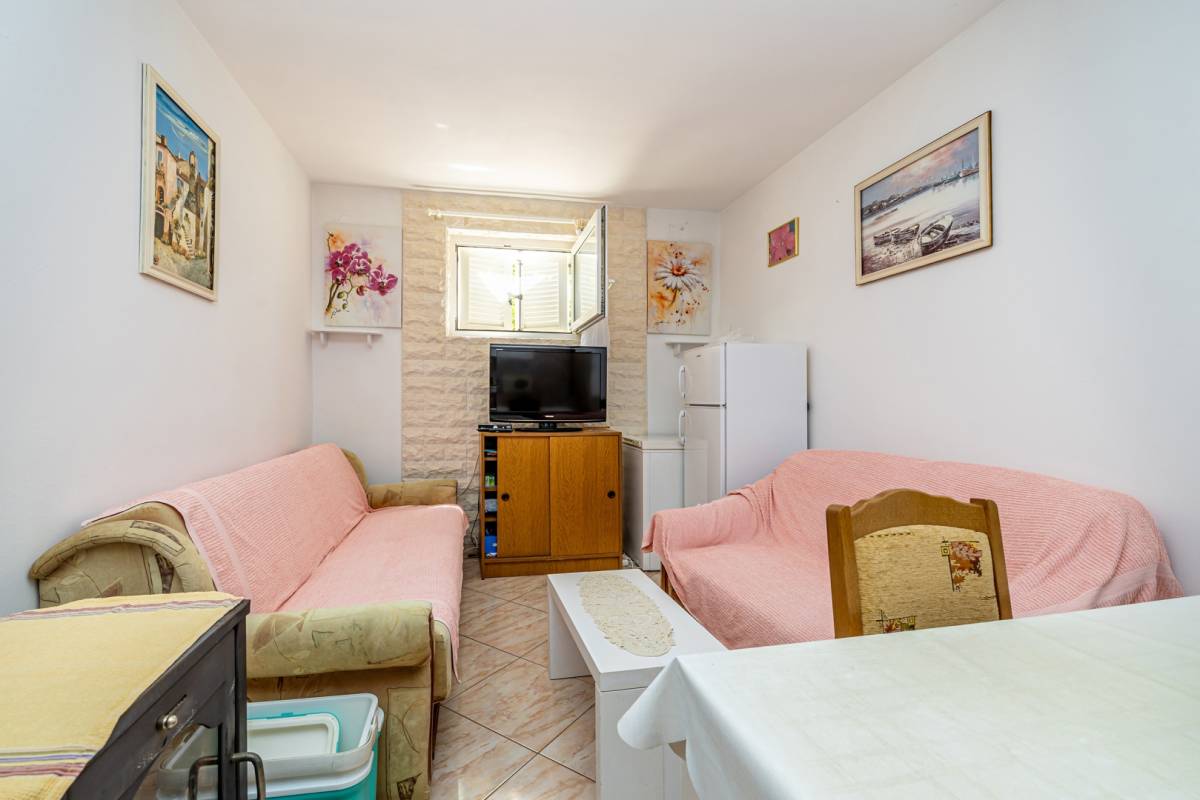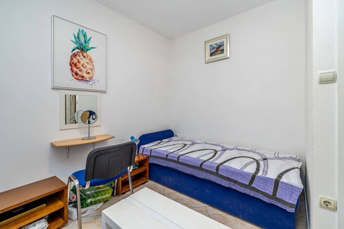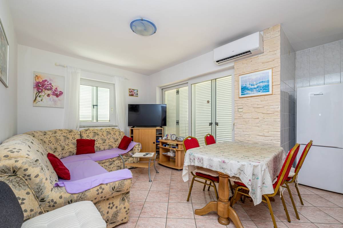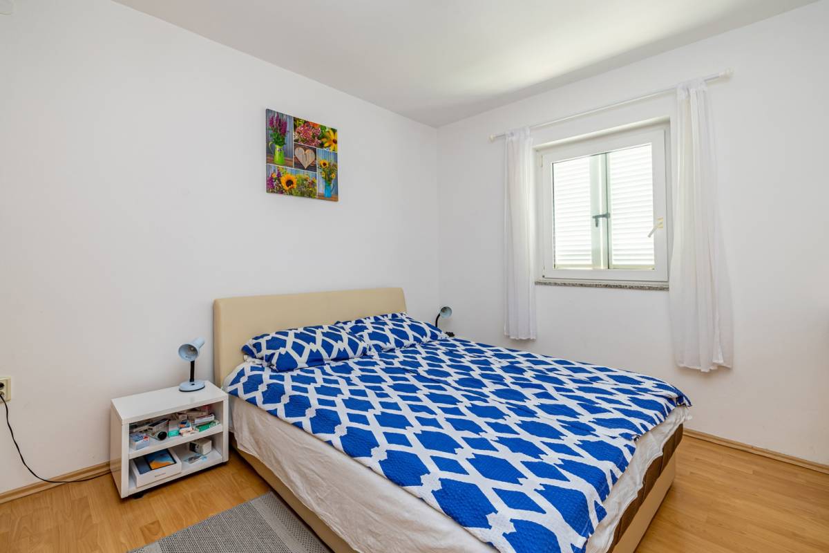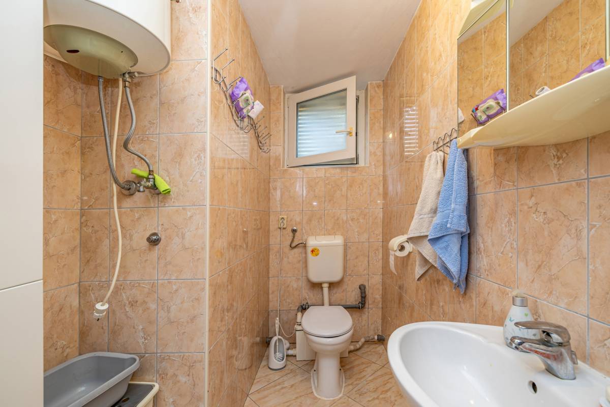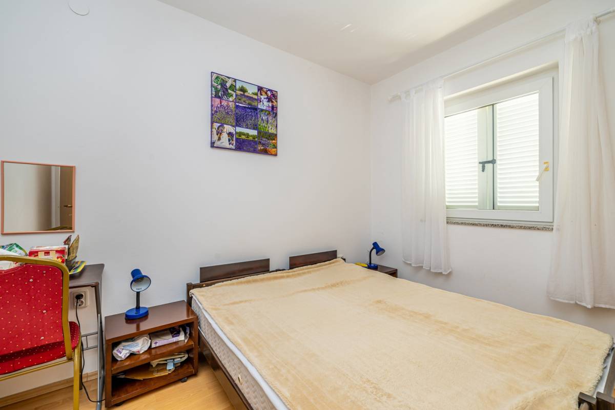 Ova šarmantna kuća stambene površine 100 m² sastoji se od dva odvojena apartmana, što je čini izvrsnim izborom za višegeneracijsko stanovanje ili iznajmljivanje. Svaki apartman uključuje dnevni boravak, kuhinju s blagovaonicom, dvije spavaće sobe, kupaonicu i vlastitu terasu – raspored koji osigurava udobnost i privatnost.