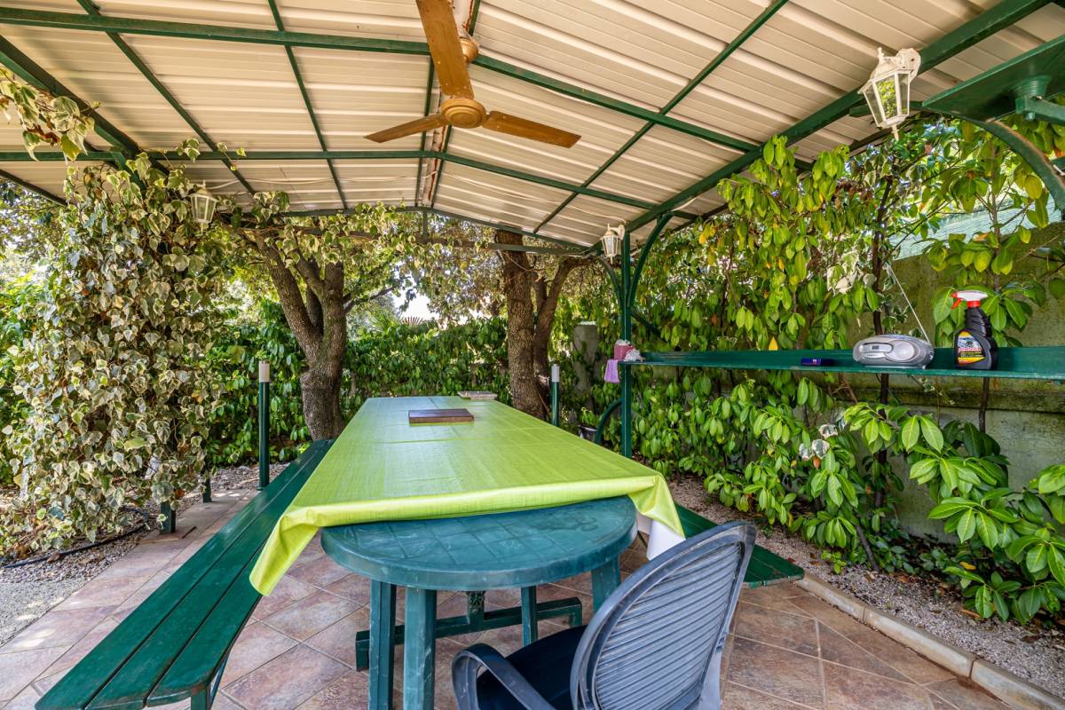 Uređena okućnica nudi razne mogućnosti – ispred kuće nalazi se natkriveni roštilj, savršen za druženja i obiteljske trenutke na otvorenom. Vrt je njegovan pomoću ekonomičnog sustava navodnjavanja kap po kap, što rezultira zelenilom i obiljem cvijeća tijekom cijele sezone.