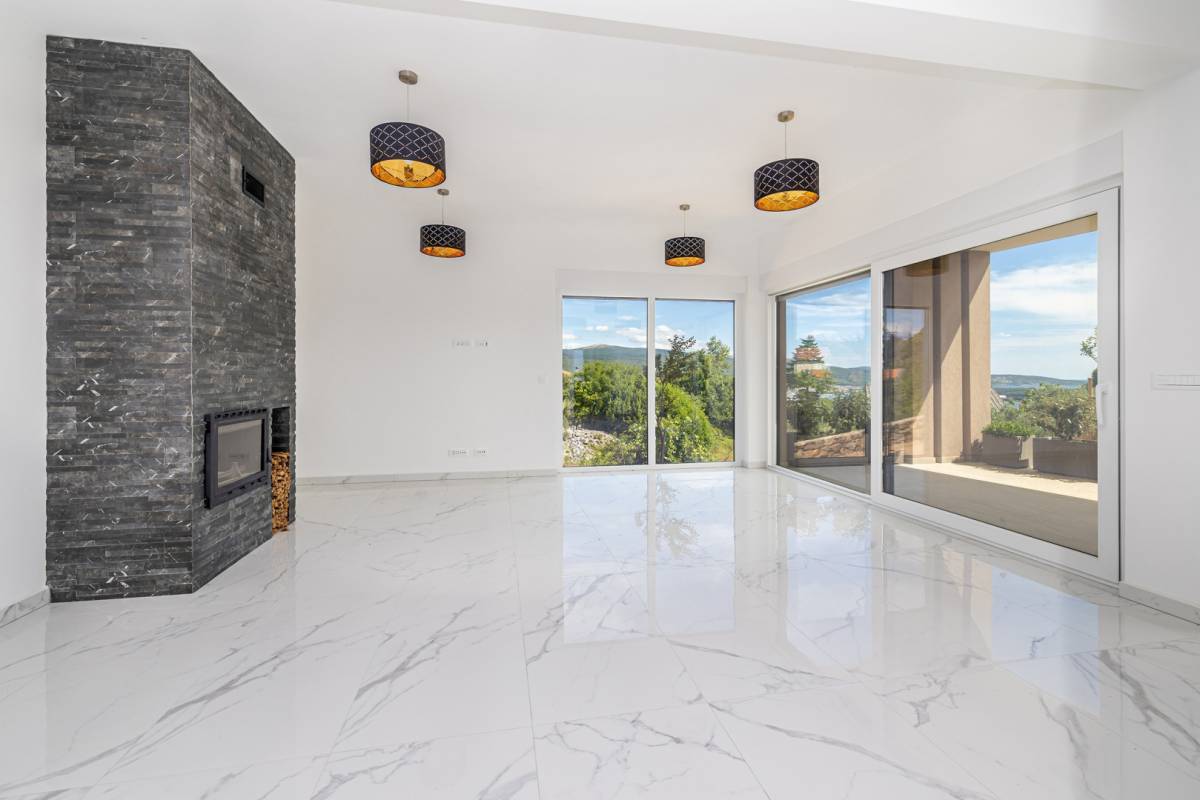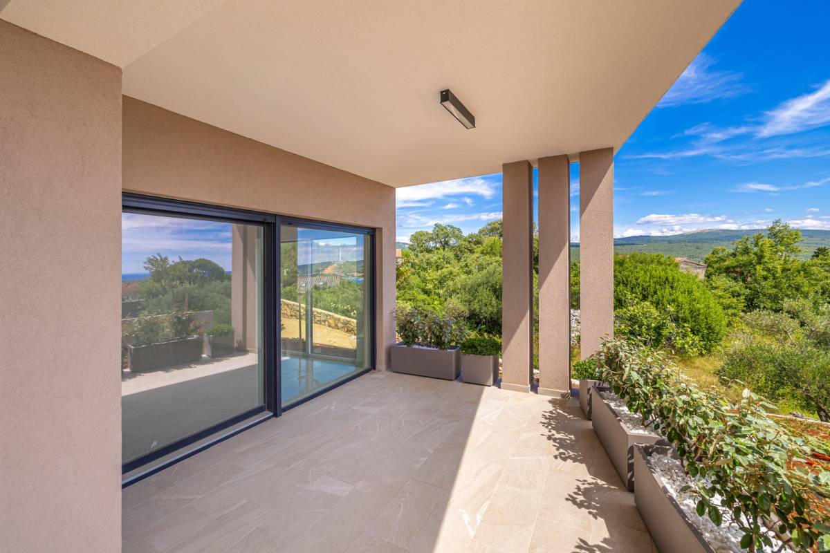 Na iznimno mirnoj lokaciji u blizini GRADA KRKA smjestila se ova moderno dizajnirana luksuzna vila, koja osvaja s panoramskim pogledom na more i otoke te udaljenošću od svega 1,5 km od kristalno čiste obale.