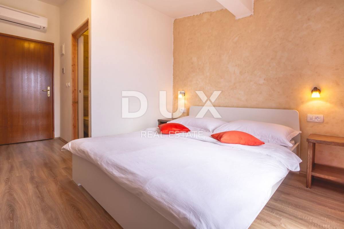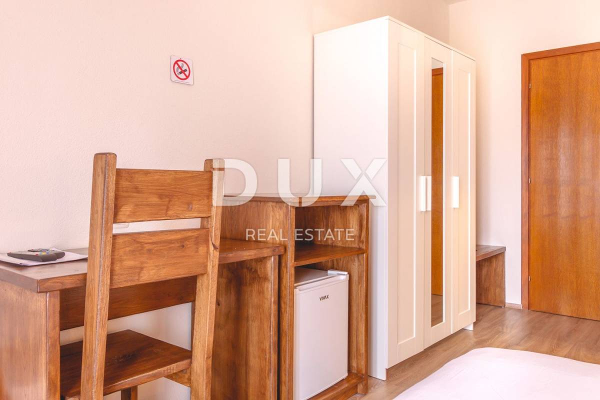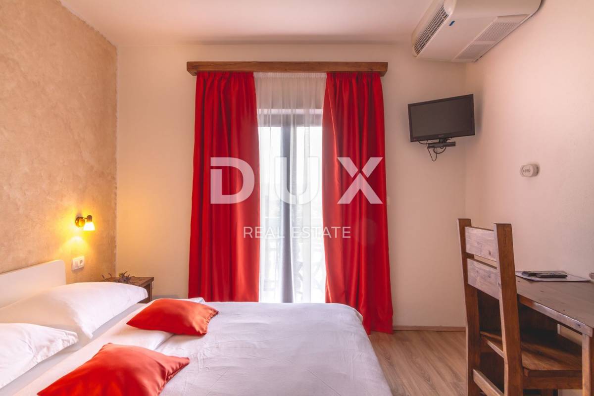 Poslovno- stambeni objekt s oko 570 m2 na izvrsnoj lokaciji smješten na parceli od oko 1500 m2. Objekt ima četiri etaže. U suterenu se nalazi kotlovnica i prostrano spremište. U prizemlju objekta nalazi se kompletno uređen restoran s profesionalnom kuhinjom, osamdeset sjedećih mjesta te izlazom na vanjsku terasu. Unutrašnje stepenice vode na prvi i drugi kat gdje se nalazi dvanaest vrlo lijepo opremljenih dvokrevetnih spavaćih soba svaka sa kupaonicom i izlazom na balkon s kojeg se pruža pogled na more. Na uređenoj okućnici od nalazi se sunčalište sa jacuzzijem, okruženo mediteranskim biljem i maslinama. Tu je također smješteno igralište za djecu te parkirni prostor. Pri gradnji i adaptaciji koja je obavljena 2016. godine korišteni su vrlo kvalitetni materijali i oprema, visokokvalitetna keramika, PVC stolarija, vrhunske sanitarije, TV, klima uređaji, voda se grije preko solarnih panela