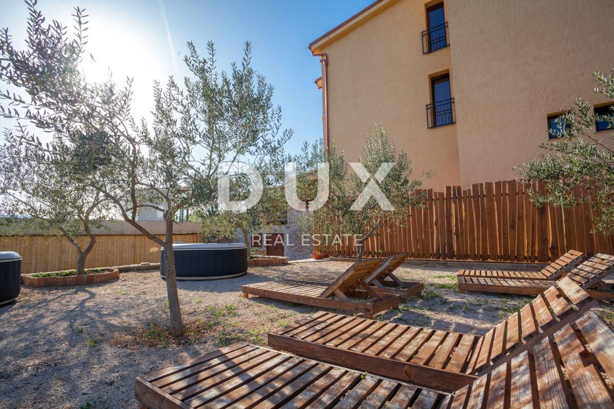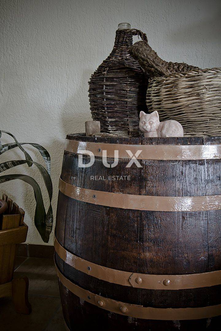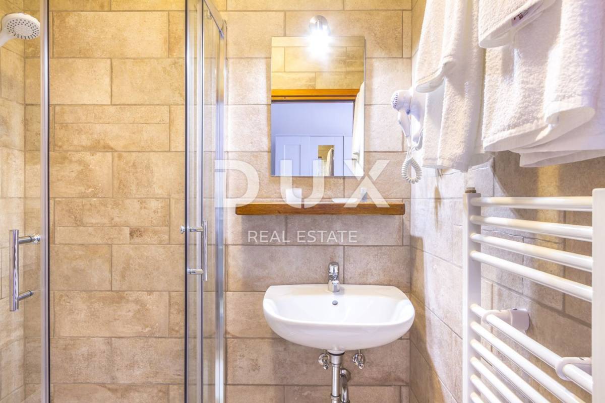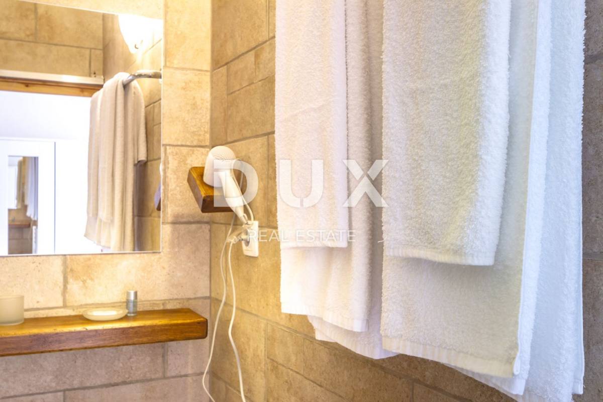 Poslovno- stambeni objekt s oko 570 m2 na izvrsnoj lokaciji smješten na parceli od oko 1500 m2. Objekt ima četiri etaže. U suterenu se nalazi kotlovnica i prostrano spremište. U prizemlju objekta nalazi se kompletno uređen restoran s profesionalnom kuhinjom, osamdeset sjedećih mjesta te izlazom na vanjsku terasu. Unutrašnje stepenice vode na prvi i drugi kat gdje se nalazi dvanaest vrlo lijepo opremljenih dvokrevetnih spavaćih soba svaka sa kupaonicom i izlazom na balkon s kojeg se pruža pogled na more. Na uređenoj okućnici od nalazi se sunčalište sa jacuzzijem, okruženo mediteranskim biljem i maslinama. Tu je također smješteno igralište za djecu te parkirni prostor. Pri gradnji i adaptaciji koja je obavljena 2016. godine korišteni su vrlo kvalitetni materijali i oprema, visokokvalitetna keramika, PVC stolarija, vrhunske sanitarije, TV, klima uređaji, voda se grije preko solarnih panela