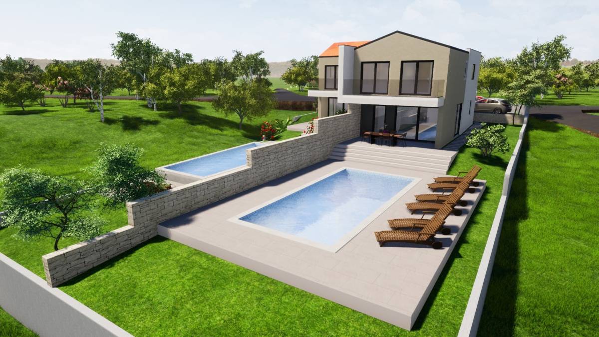 U blizini Malinske, na jednom od najpoželjnijih dijelova otoka Krka, prodaje se atraktivan građevinski teren s plaćenim komunalijama i ishođenom građevinskom dozvolom za gradnju moderne dvojne kuće. Svaka jedinica prostirat će se na 148 m² kroz prizemlje i kat, pružajući prostran i funkcionalan životni prostor idealan za odmor, cjelogodišnje stanovanje ili turističku investiciju.