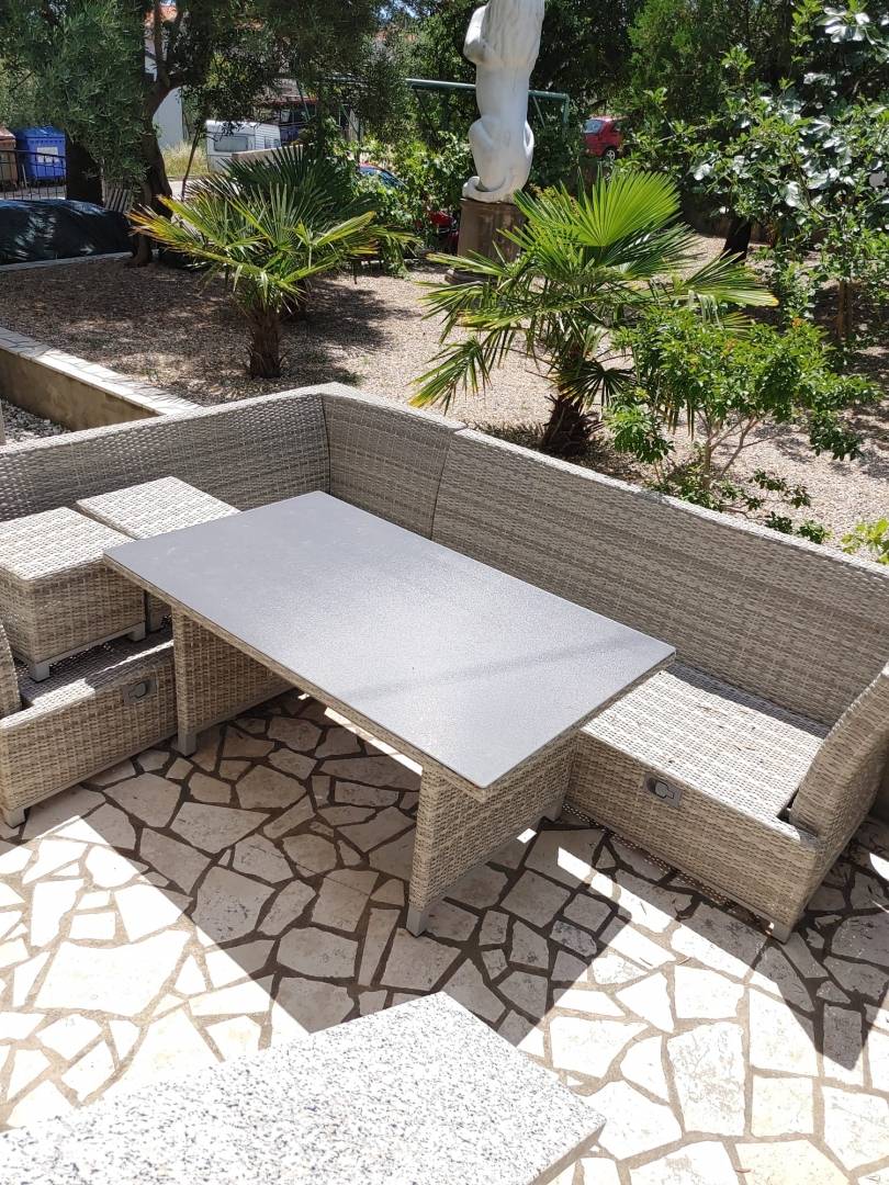 Namještaj nije uključen u cijenu, no prema dogovoru je moguće da dio namještaja ostane u novom vlasniku. Etaža kuće prikladna je za osobno korištenje i odmor, zahvaljujući malom broju stambenih jedinica, pogledu na more, zajedničkim sadržajima i osiguranim parkirnim mjestima.