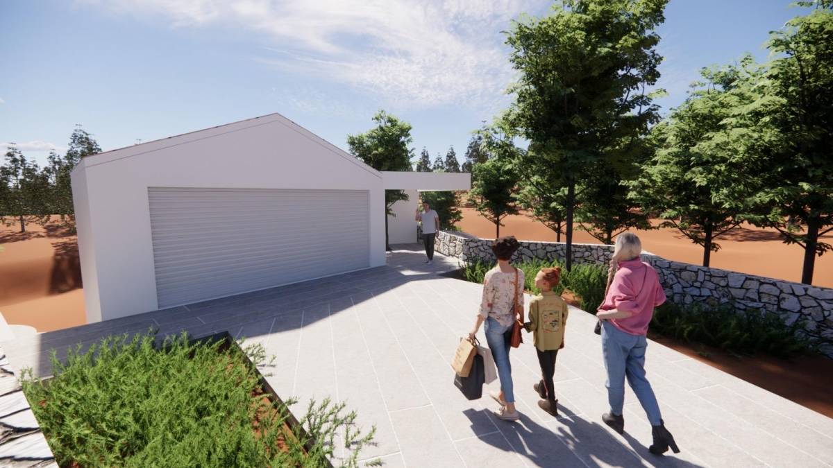 Okućnica je pažljivo uređena s mediteranskim raslinjem i nudi brojne sadržaje za opuštanje i uživanje na otvorenom: bazen, sunčalište, vanjsku kuhinju i roštilj, te dovoljno parkirnog prostora, uključujući garažu za dva automobila i dodatna mjesta na parceli.