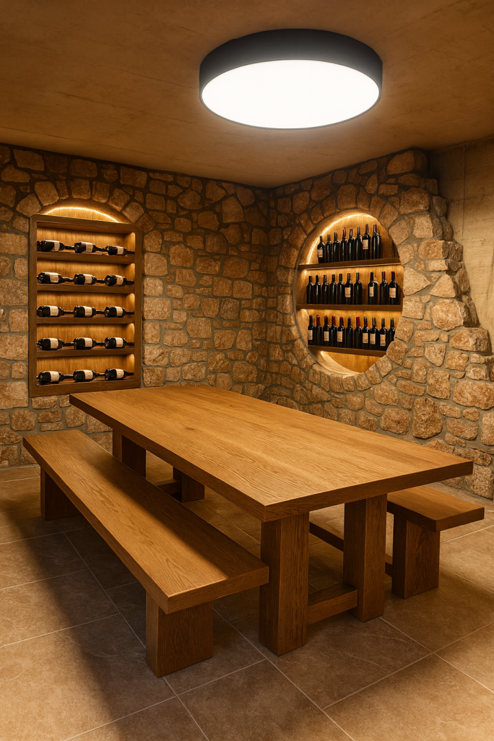 U nastavku suterena smješteni su i wellness prostor sa saunom, dodatna kupaonica, toalet, kao i vinski podrum, dok se u posebnom dijelu nalazi apartmanska jedinica s vlastitom kupaonicom, spavaćom sobom i direktnim izlazom na bazen, savršeno za goste ili članove obitelji.