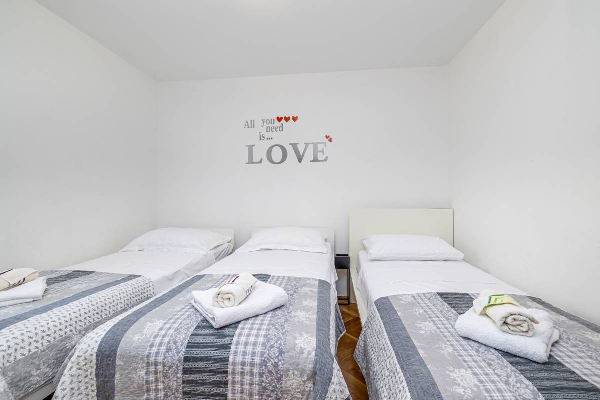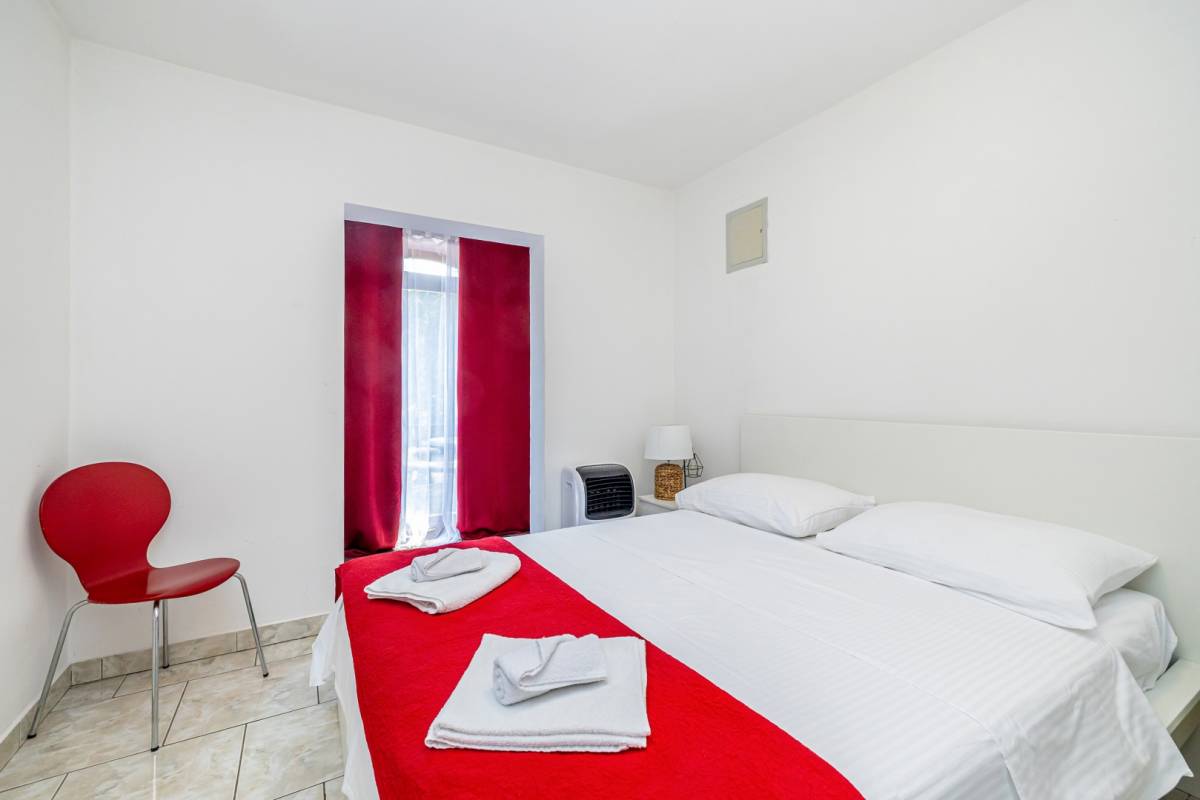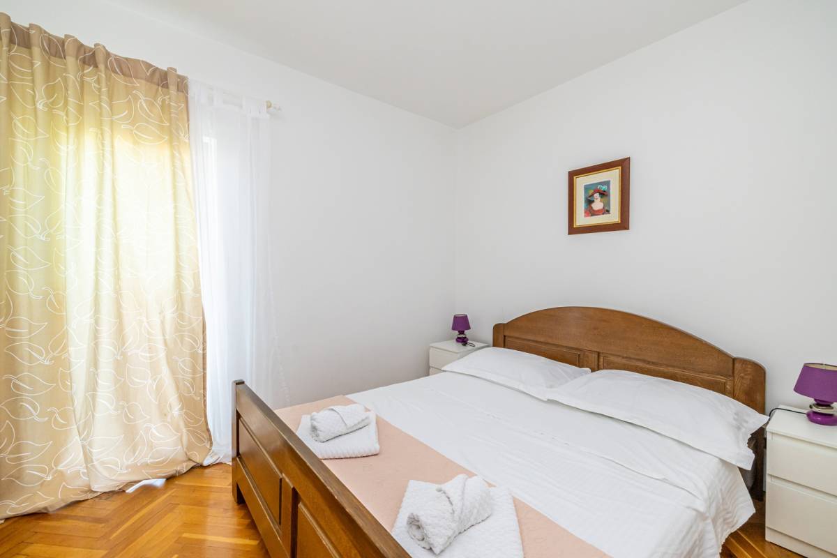 Prvi kat nudi četiri spavaće sobe, kupaonicu, dva balkona te prostranu terasu s koje se pruža predivan pogled na more. U visokom potkrovlju smještene su dodatne dvije spavaće sobe i kupaonica, što čini kuću idealnom za veće obitelji ili grupe gostiju.