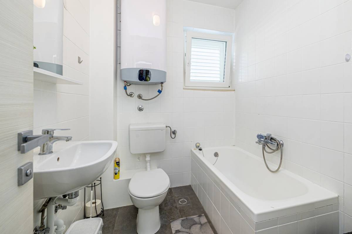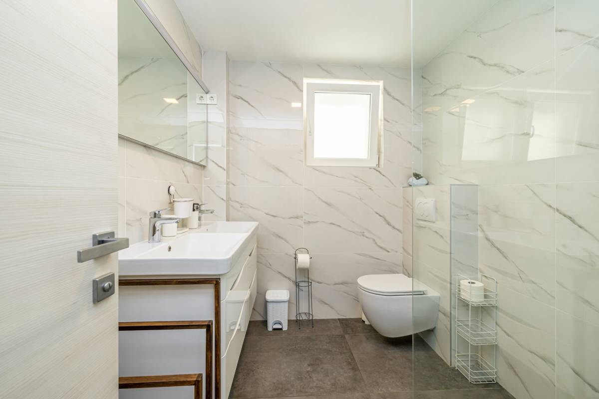U prizemlju se nalazi moderno uređena kuhinja s blagovaonicom i dnevnim boravkom, kupaonica te dvije spavaće sobe. Iz dnevnog dijela izlazi se na okućnicu s prostranom terasom, bazenom i sunčalištem – savršenim za opuštanje i druženja.