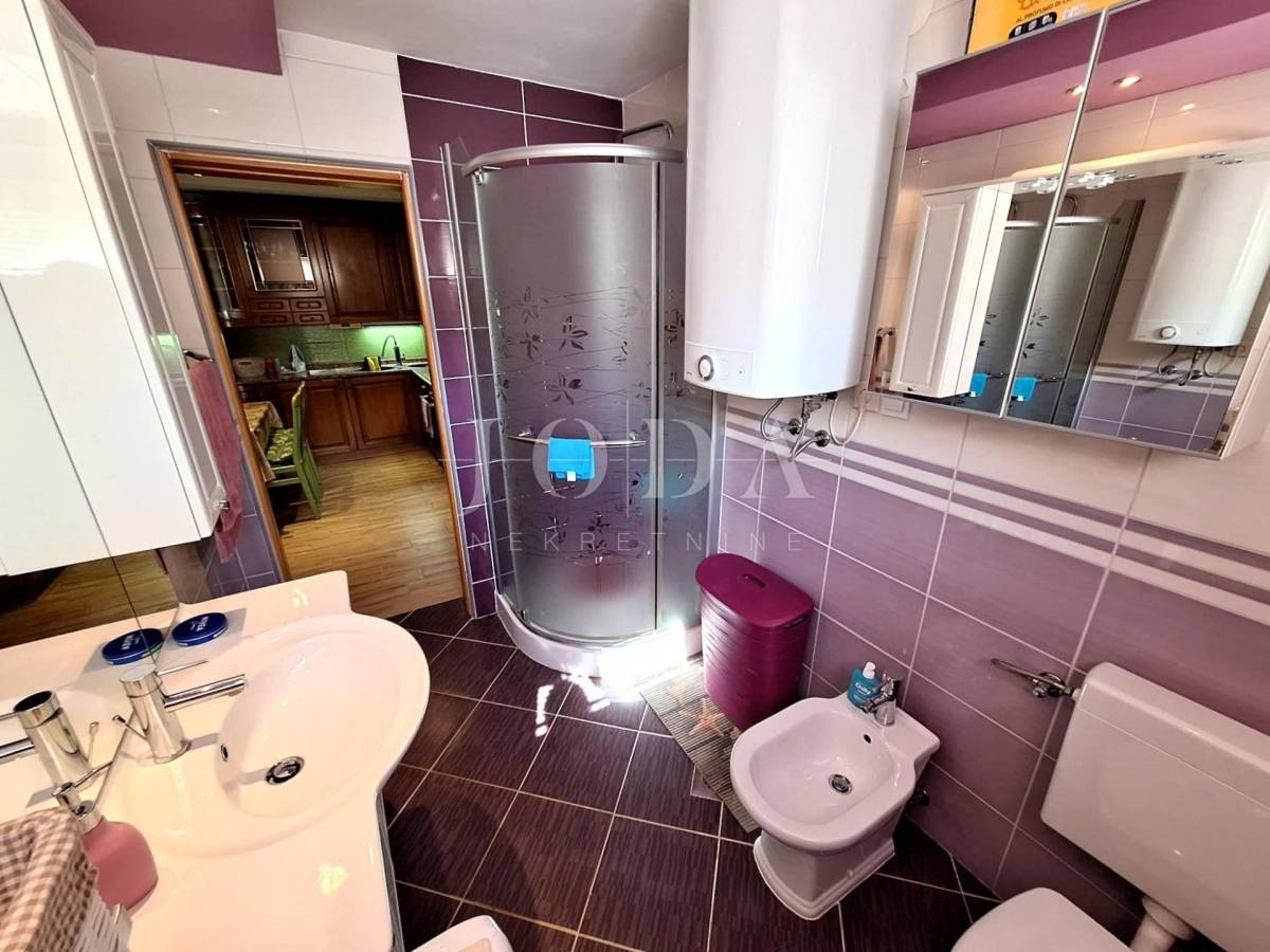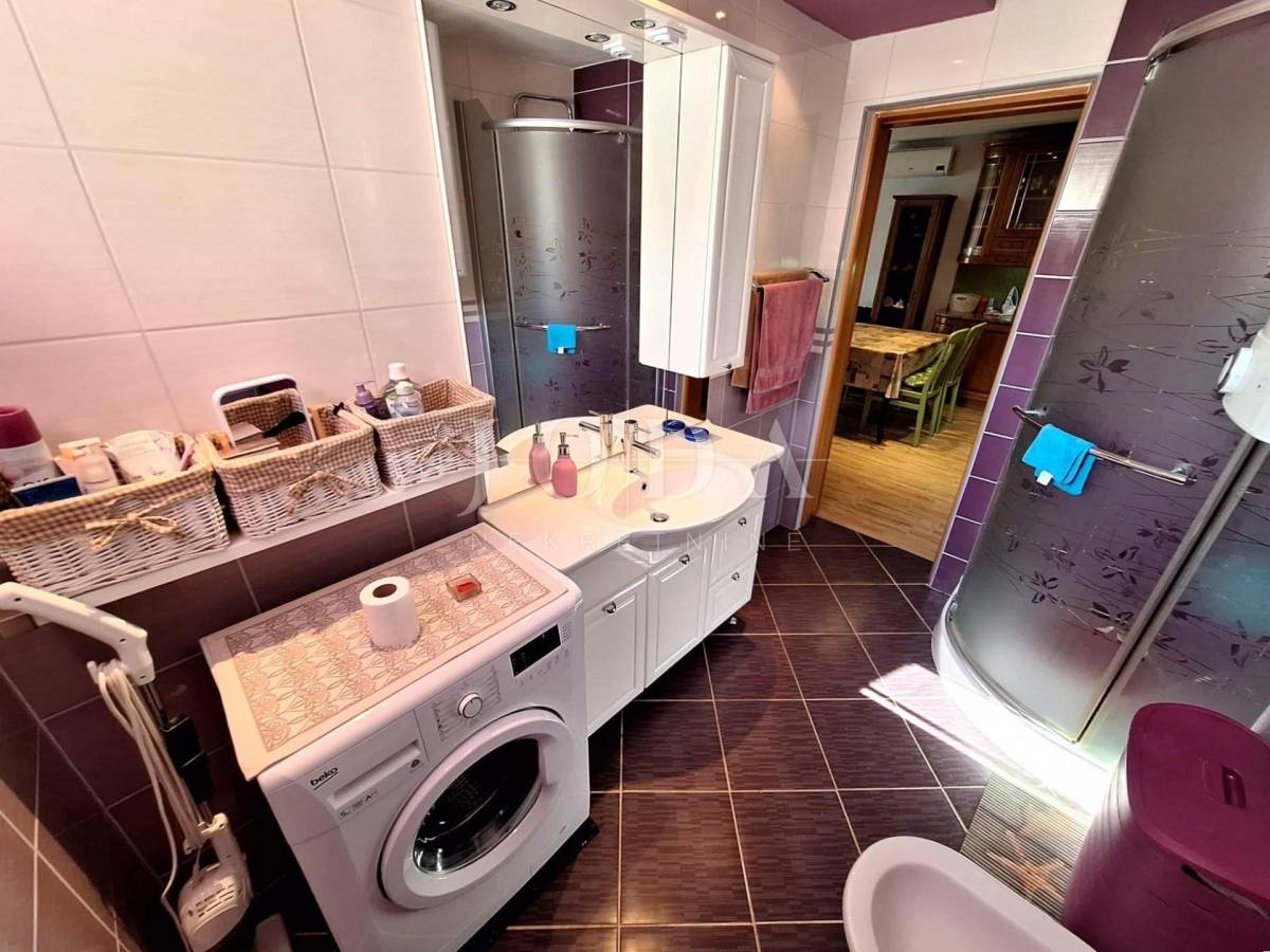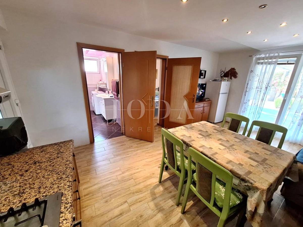 Kuća se sastoji od prizemlja i kata. U prizemlju je jednosobni stan koji se sastoji od dnevnog boravka s kuhinjom i blagovaonom, spavaće sobe, kupaone i dvije natkrivene terase. Na katu je dvosobni stan s dvije spavaće sobe, dnevnog boravka s kuhinjom i blagovaonom i kupaone. Kat je nedovršen.