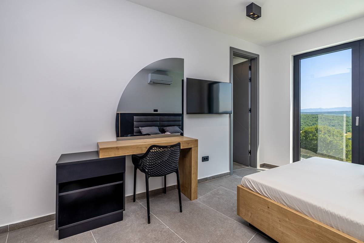 Smještena na mirnoj lokaciji u neposrednoj blizini grada Krka, ova moderna luksuzna vila pruža savršen spoj elegancije, udobnosti i potpune privatnosti. Vila se nalazi uz rub građevinske zone, okružena netaknutom prirodom i maslinicima, idealna za one koji traže mir i opuštanje, a pritom žele biti nadomak svih sadržaja koje nudi grad Krk.