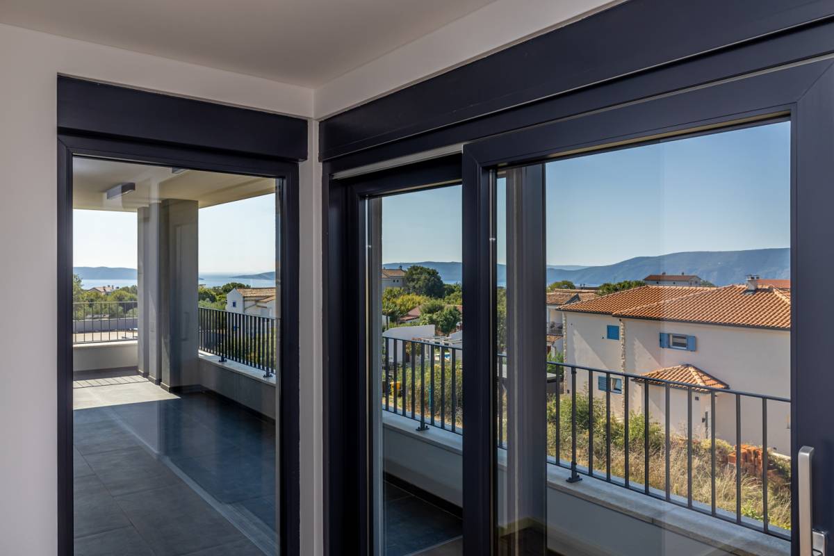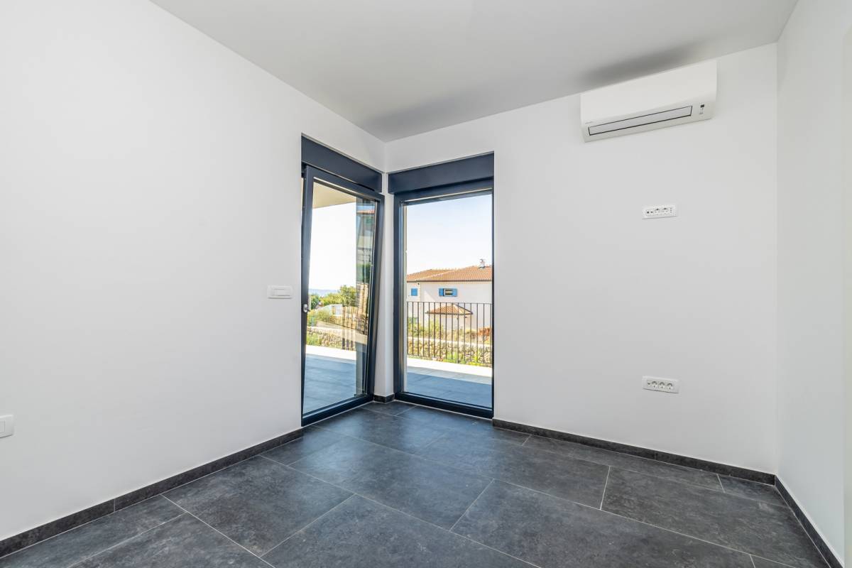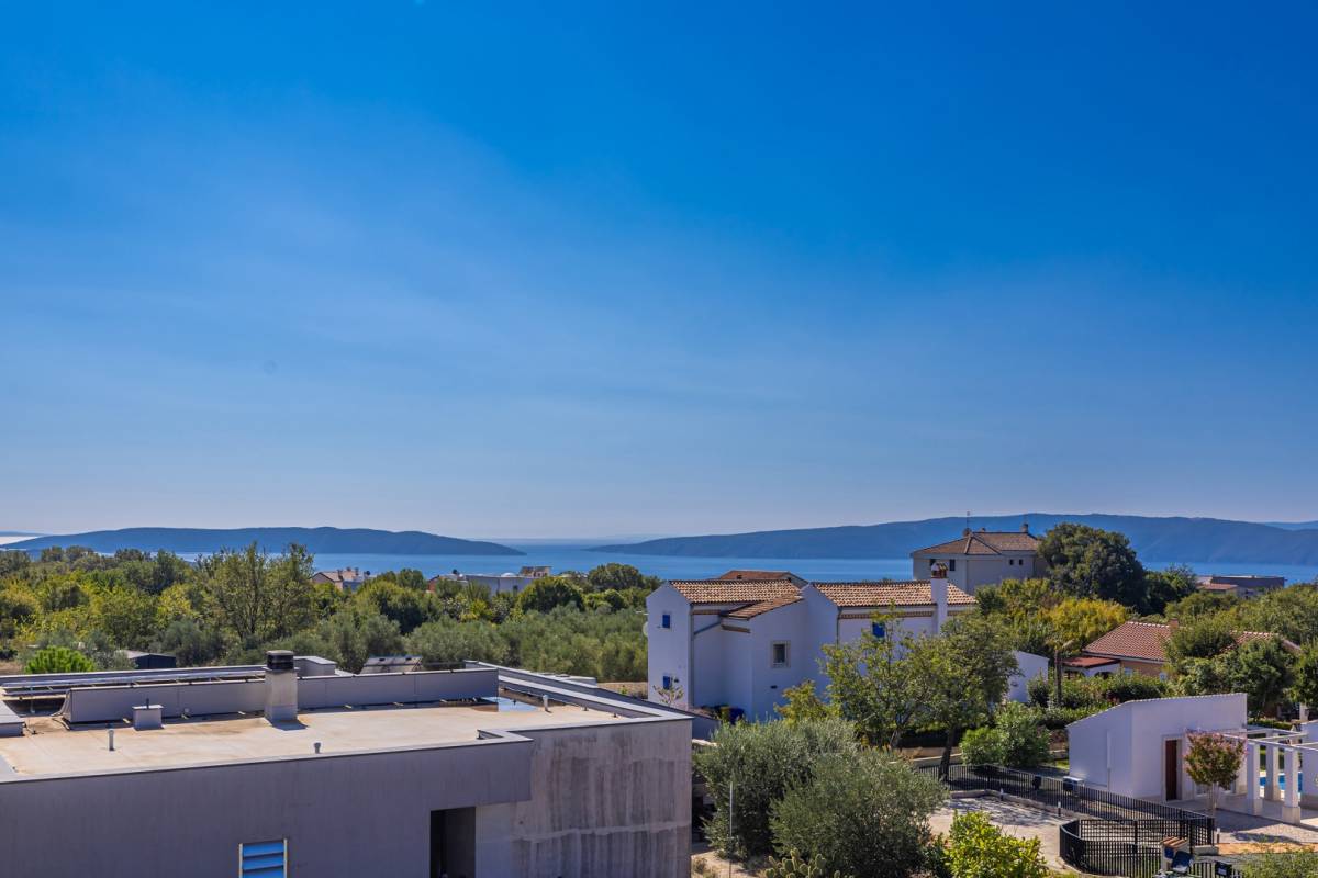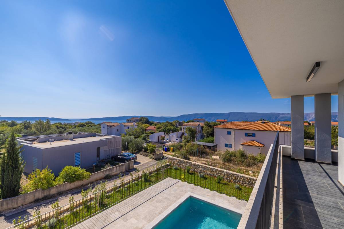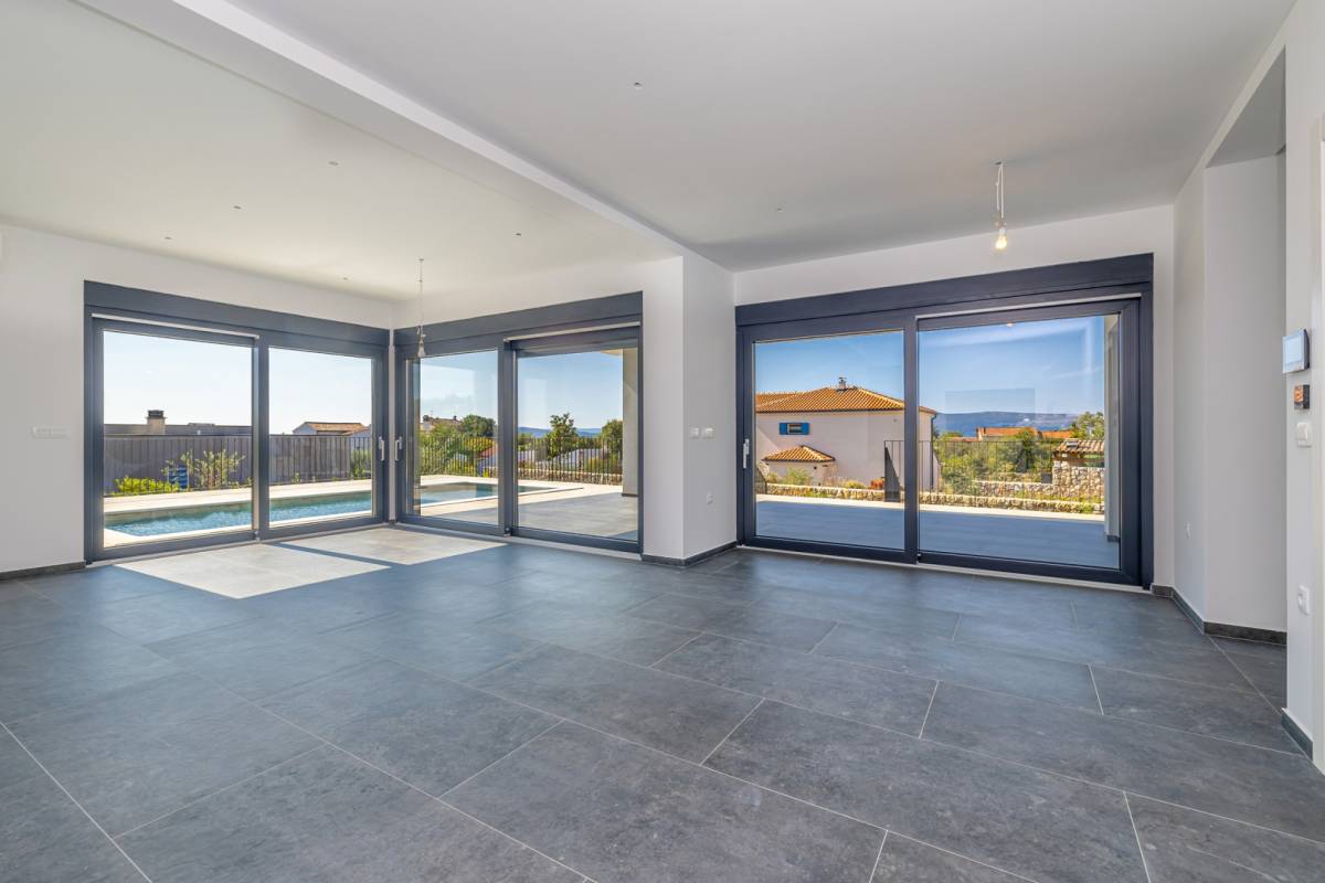Na mirnoj i atraktivnoj lokaciji u okolici grada Krka smjestila se ova suvremena vila koja pruža vrhunsku udobnost i nezaboravan pogled na more. Idealna je kao luksuzna rezidencija za odmor ili cjelogodišnje stanovanje u mediteranskom okruženju.