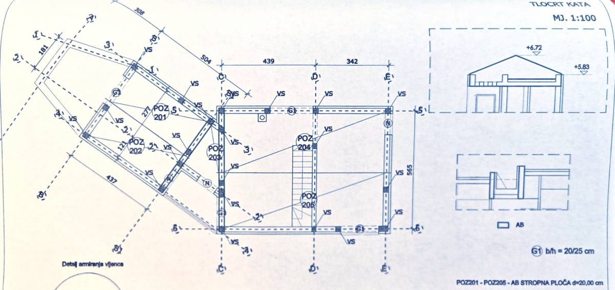 Ishođena je građevinska dozvola za izgradnju kuće ukupne bruto površine 166,60 m². Projekt predviđa funkcionalan raspored prostora: prizemlje površine 87,70 m² i kat od 78,90 m².