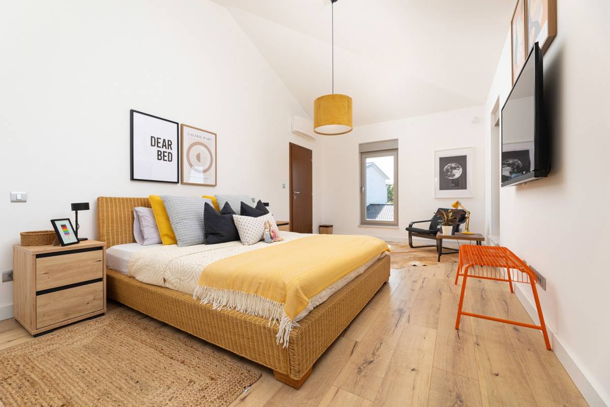Kuća je u potpunosti klimatizirana naprednim Daikin sustavom, opremljena full alarmnim sustavom, kaminom i izvedena u visokom standardu završne obrade – keramika, parket, PVC stolarija i suvremeni dizajn interijera ostavljaju dojam doma koji je istovremeno sofisticiran i ugodan. Energetski certifikat A+ dodatno potvrđuje energetsku učinkovitost ove moderne vile.