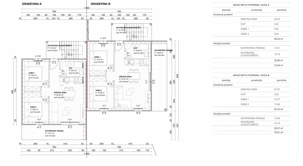 Ulaskom u apartman dočekuje vas natkriveno ulazno stubište, elegantno uređeno keramičkim pločicama, koje vodi u unutrašnjost doma. Prvi prostor koji se otvara je prostrana dnevna zona. Ovaj svijetli i prozračni prostor savršen je za obiteljska okupljanja ili opuštanje, s otvorenim rasporedom koji povezuje dnevni boravak, blagovaonicu i kuhinju.