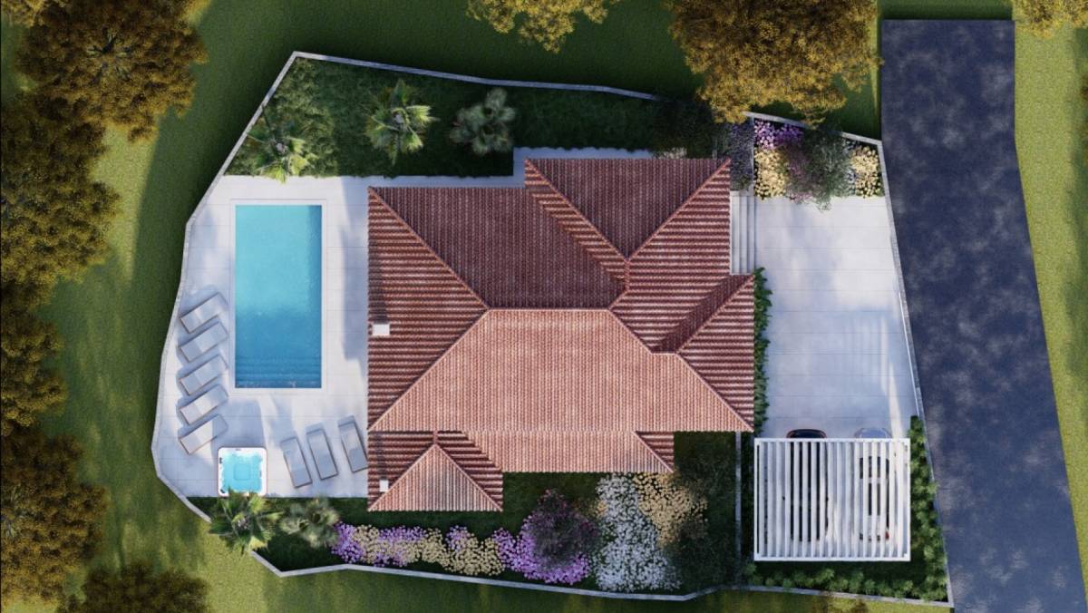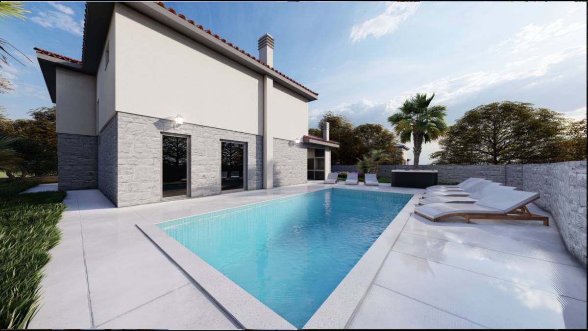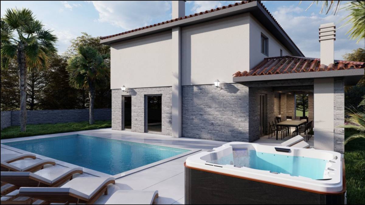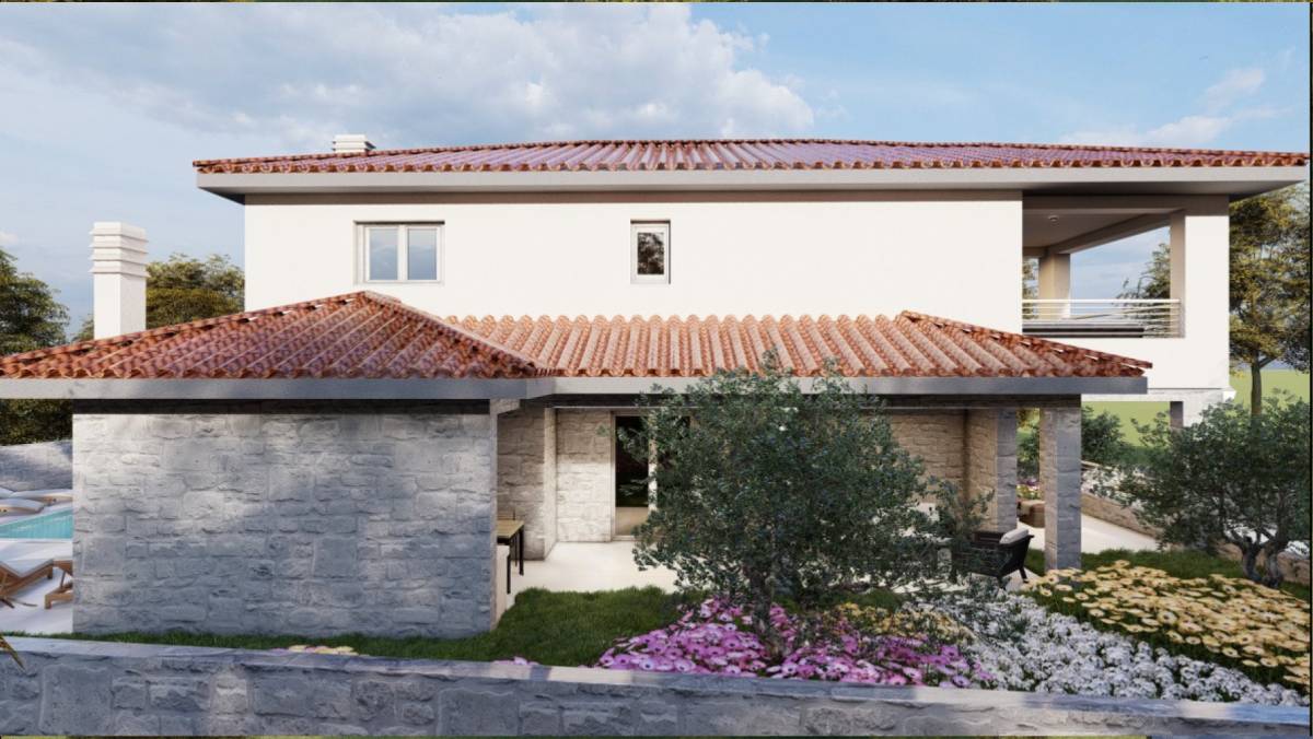 Prodaje se vila s bazenom u izgradnji na lijepoj i mirnoj lokaciji u okolici Dobrinja na otoku Krku. Odlikuje ju okućnica s predivnim vrtom i natkrivenim terasama.
