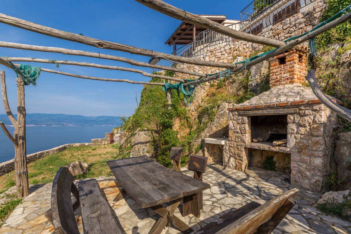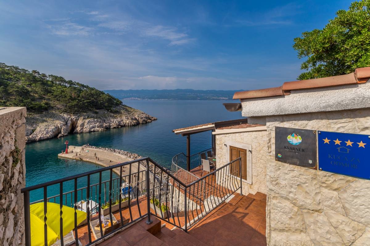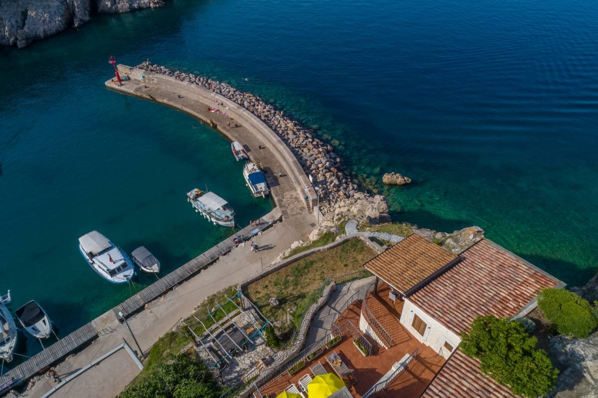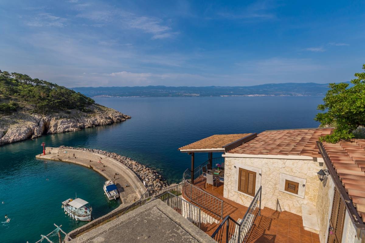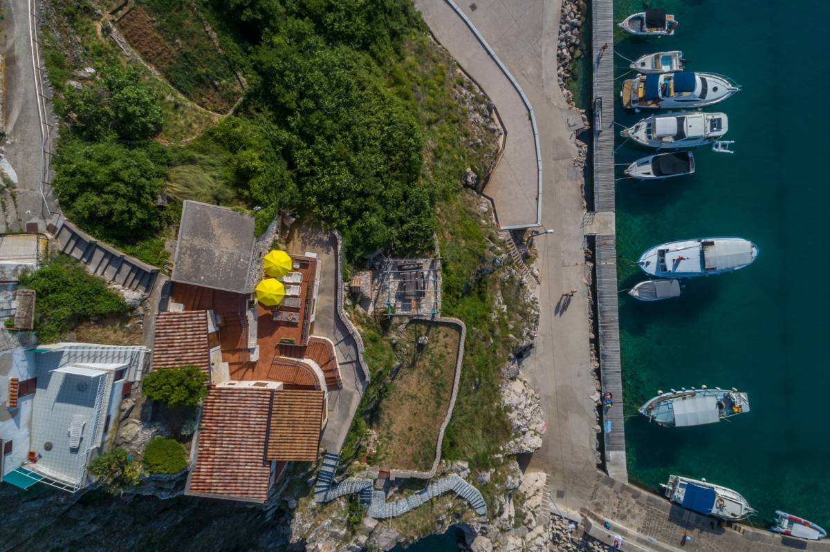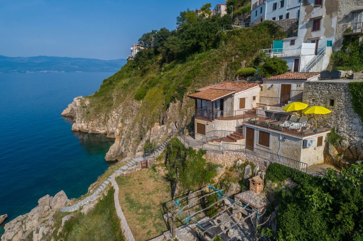 Sastoji se od ukupno tri renovirane kamene kuće, smještene na litici iznad mora, koje funkcioniraju kao jedna cjelina. Kuća ima pristup s dvije strane. S obzirom na poziciju ima odličnu privatnost i otvoreni pogled prema lučici i moru. Dvije kuće su prizemnice i sastoje se od sobe i kupaonice, dok je treća katnica. Na katu se nalazi kuhinja, blagovaonica, dnevni boravak i WC, te izlaz na natkrivenu terasu koja može poslužiti kao ljetna blagovaonica. Prizemlje je povezano unutrašnjim stepeništem, a tamo se nalazi spavaća soba i kupaonica, te izlaz na donju terasu. Taj prostor je moguće prenamjeniti u poseban apartman. Posebnost ovih kuća je prekrasan pogled iz svih prostorija. Na okućnici se nalazi prostor za roštiljanje. Objekt je povezan privatnim stepeništem koje se spušta do mora. Neposredno ispod kuće nalazi se skrivena, šljunčana plaža kojoj je jedini pristup kroz prirodnu spilju. Parkirno mjesto, udaljeno od objekta oko 150 m, moguće je zakupiti od općine.
