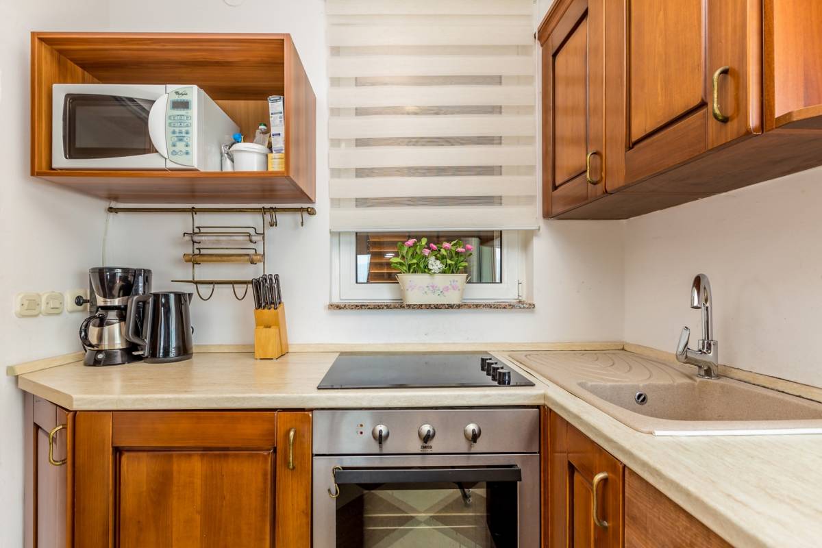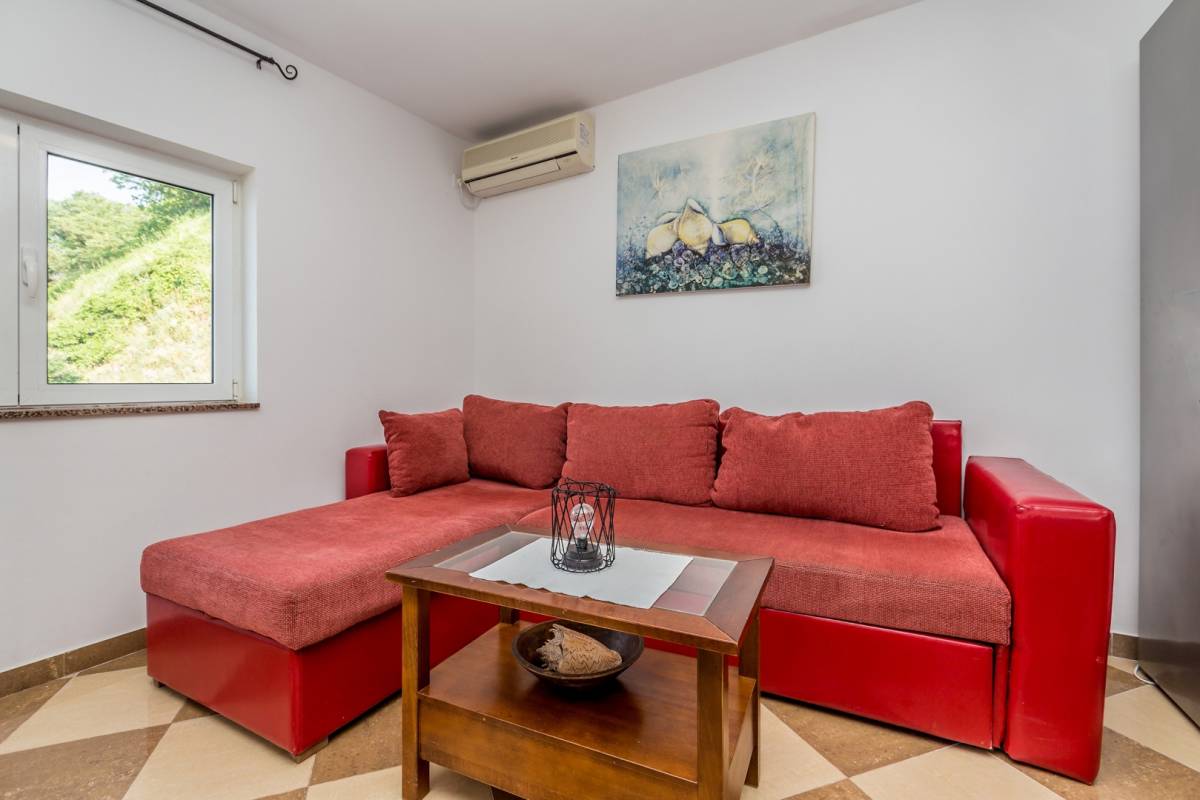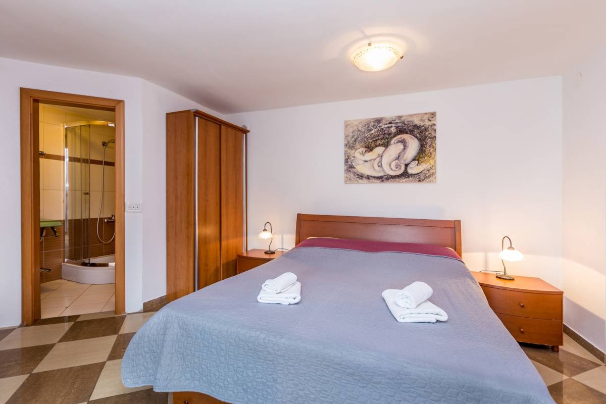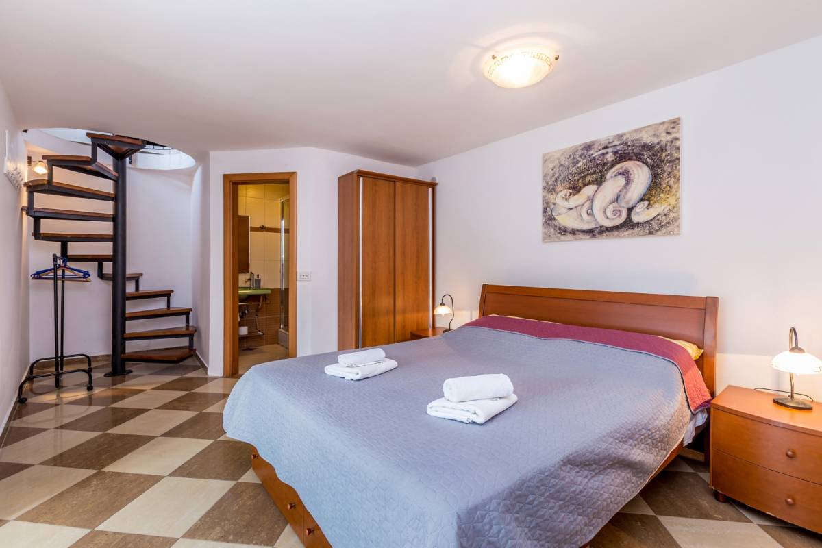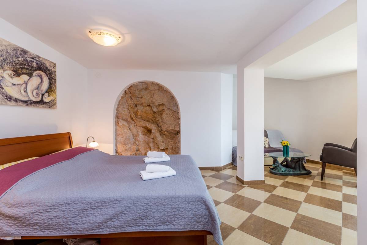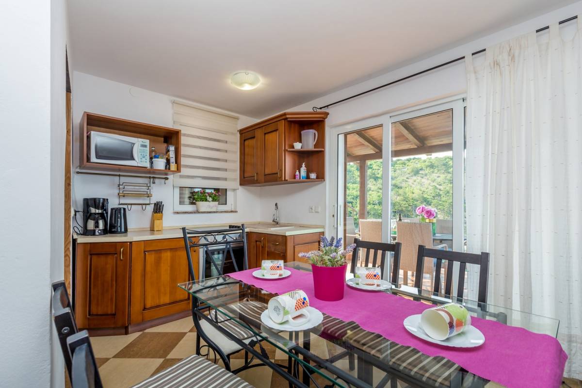 Sastoji se od ukupno tri renovirane kamene kuće, smještene na litici iznad mora, koje funkcioniraju kao jedna cjelina. Kuća ima pristup s dvije strane. S obzirom na poziciju ima odličnu privatnost i otvoreni pogled prema lučici i moru. Dvije kuće su prizemnice i sastoje se od sobe i kupaonice, dok je treća katnica. Na katu se nalazi kuhinja, blagovaonica, dnevni boravak i WC, te izlaz na natkrivenu terasu koja može poslužiti kao ljetna blagovaonica. Prizemlje je povezano unutrašnjim stepeništem, a tamo se nalazi spavaća soba i kupaonica, te izlaz na donju terasu. Taj prostor je moguće prenamjeniti u poseban apartman. Posebnost ovih kuća je prekrasan pogled iz svih prostorija. Na okućnici se nalazi prostor za roštiljanje. Objekt je povezan privatnim stepeništem koje se spušta do mora. Neposredno ispod kuće nalazi se skrivena, šljunčana plaža kojoj je jedini pristup kroz prirodnu spilju. Parkirno mjesto, udaljeno od objekta oko 150 m, moguće je zakupiti od općine.