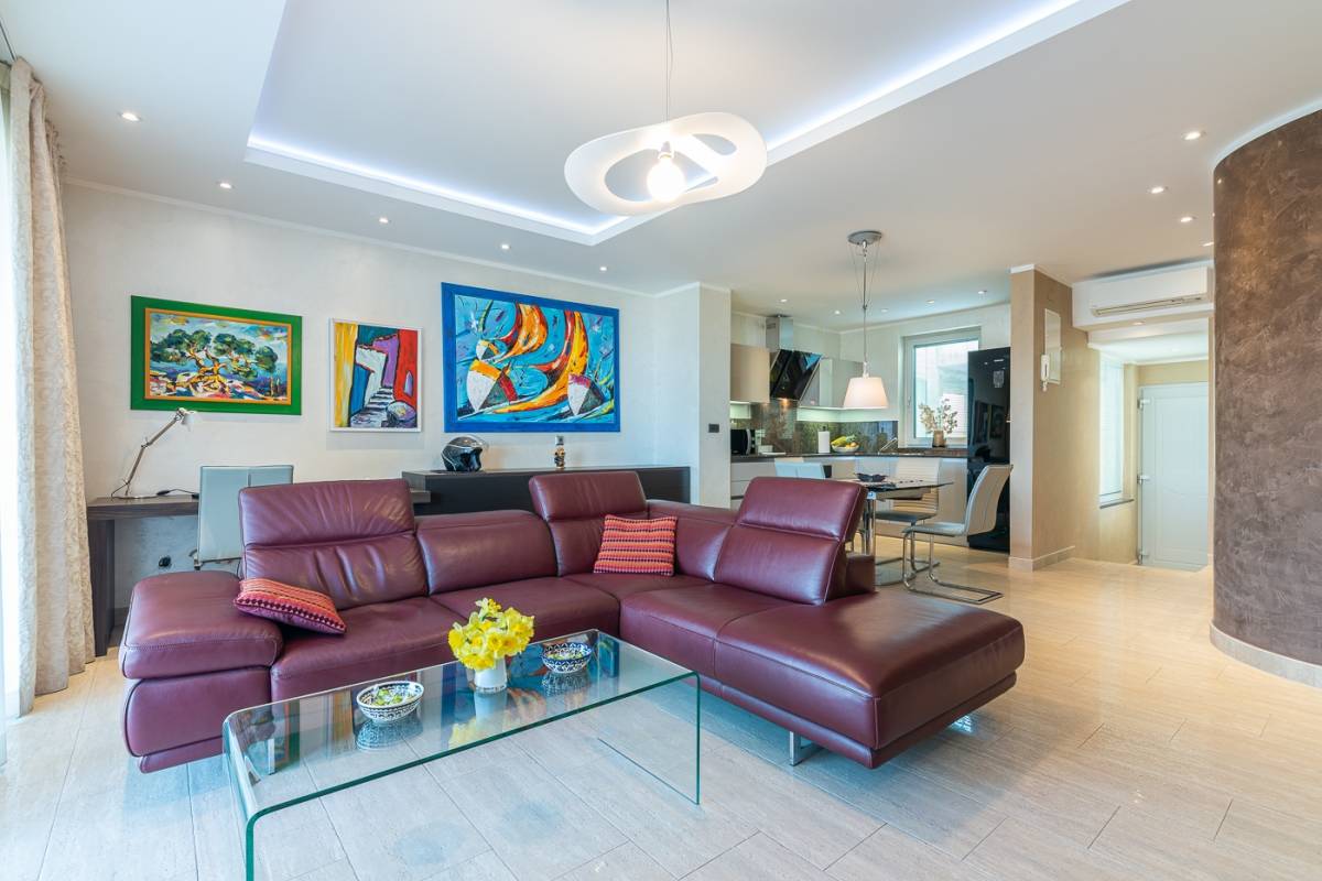 Na oko 700 metara od mora u prizemlju stambene zgrade smjestio se ovaj lijepi, moderan trosoban stan. Ima oko 106 m2,a sastoji se od kupaonice, WC-a, ostave, spavaće sobe, radne sobe, garderobe, kuhinje, blagovaonice, dnevnog boravka i lijepe, velike loggie s koje se pruža predivan pogled na more i grad Vrbnik. Stanu pripada drvarnica, okućnica od oko 40 m2 i jedno parkirno mjesto. Stan je renoviran i u njega su ugrađeni vrhunski materijali, postavljeno je podno grijanje, a hlađenje je riješeno klima uređajima. Stan se prodaje u potpunosti namješten.