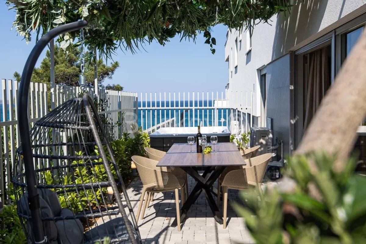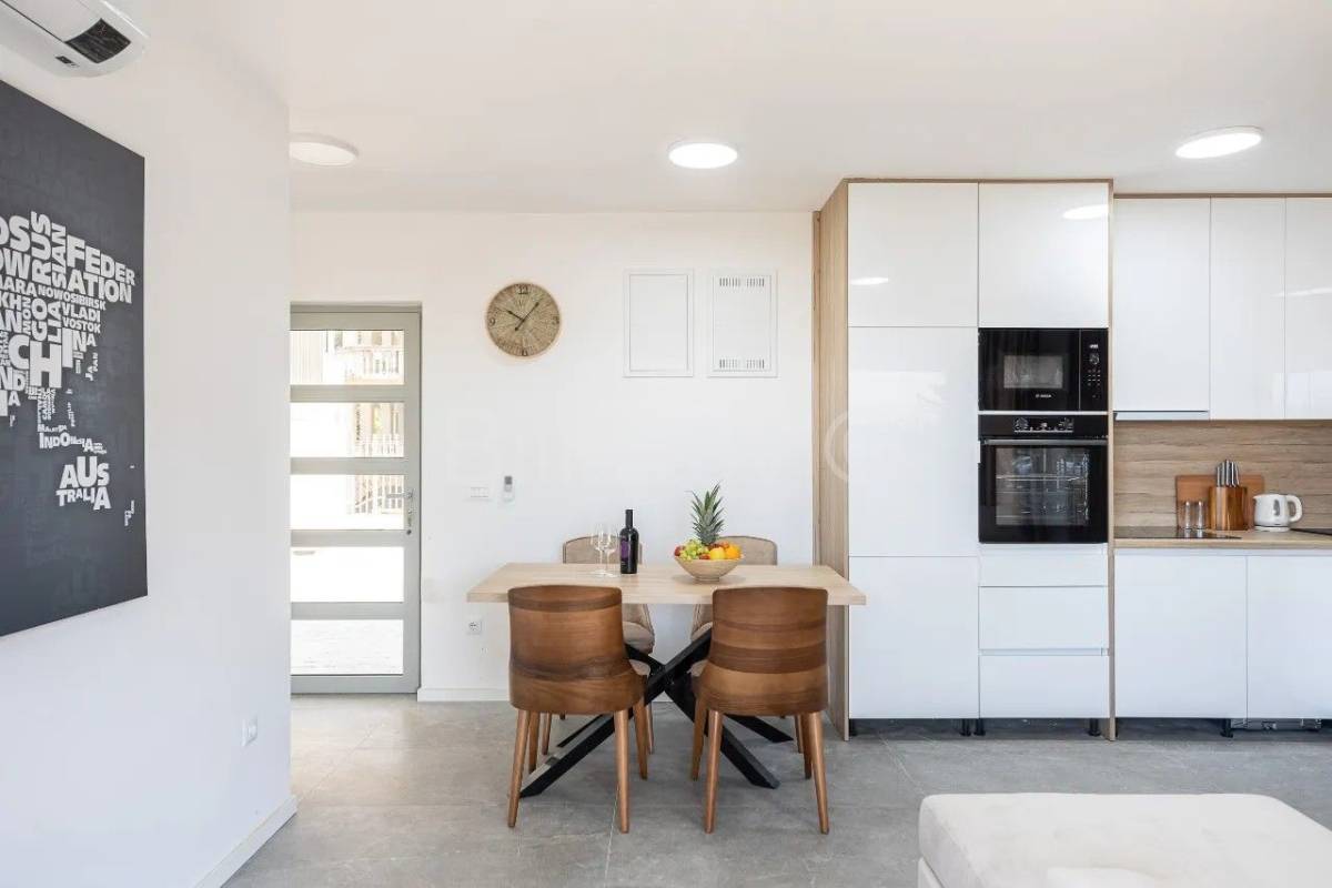 Ovaj jednosobni komforni apartman sastoji se od: jedne spavaće sobe, dnevnog boravka s kuhinjom i blagovaonom, kupaonice i stubišta te galerije. Jedno parkirno mjesto. IZ APARTMANA SE PRUŽA PREDIVAN OTVOREN POGLED NA MORE.