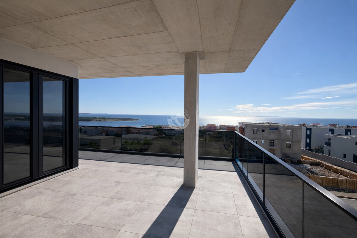 Na prodaju je ekskluzivan luksuzni penthouse u novogradnji na vrhunskoj lokaciji u gradu Novalja, na otoku Pagu, samo 200m od mora, s pogledom na more.